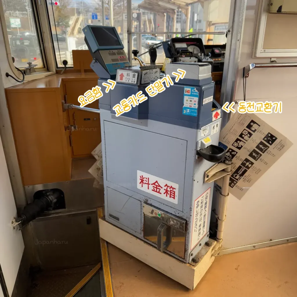 하코다테 시덴은 현금/교통카드로 이용할 수 있는데 두 가지의 이용 방법이 조금 차이가 있어요.