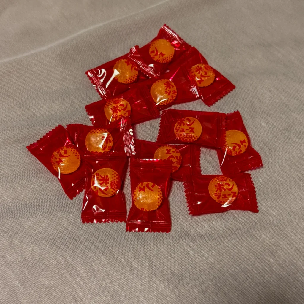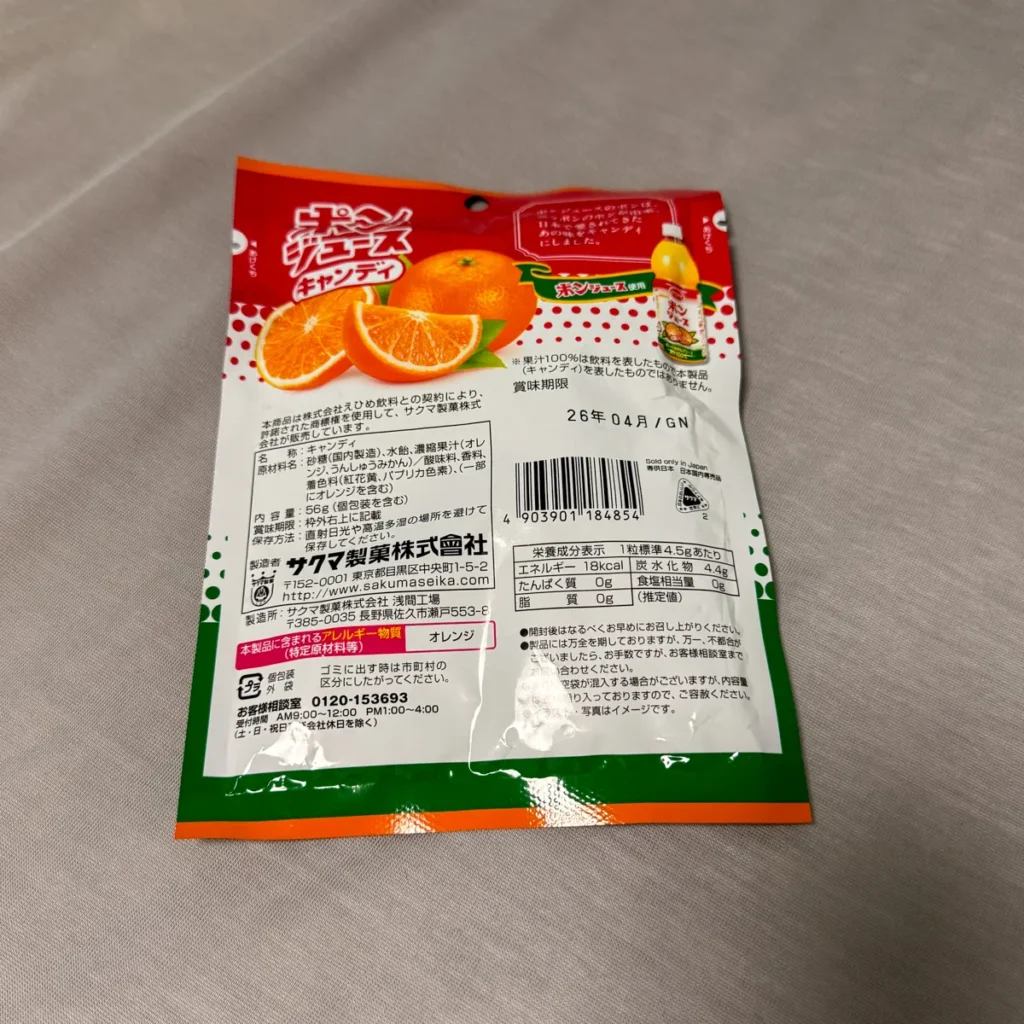 아래에 오렌지 미캉(귤) 캔디라고 적혀있어요.