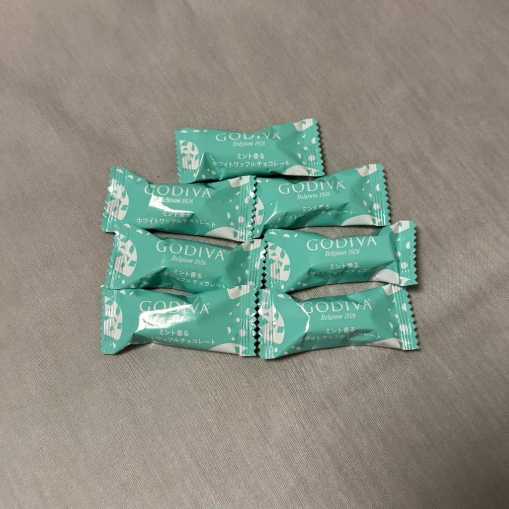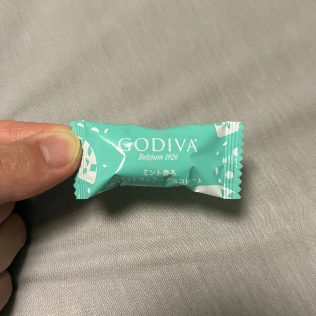 이런 식으로 초콜릿도 민트색 포장이고 초콜릿에도 GODIVA라고 글자가 적혀있어요.