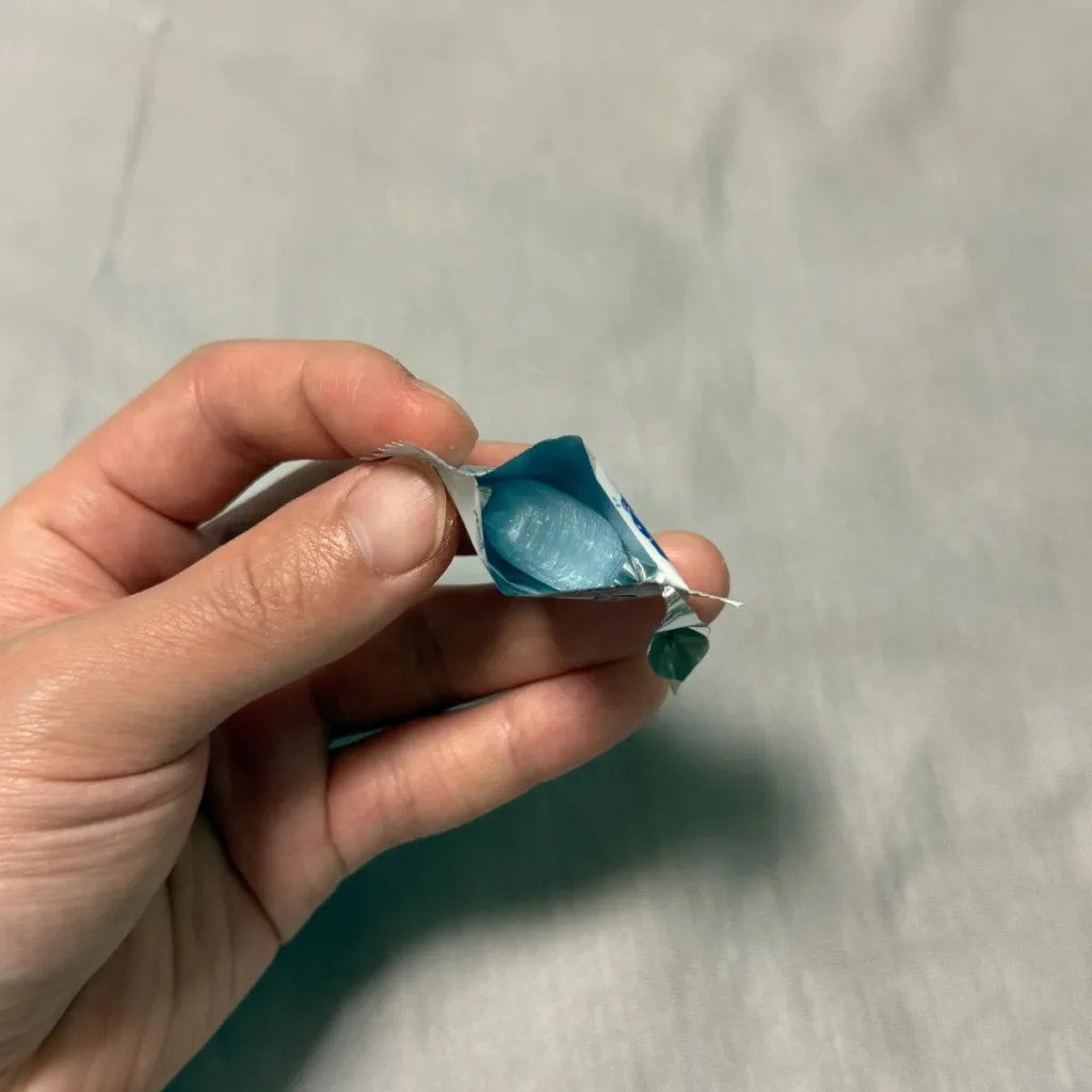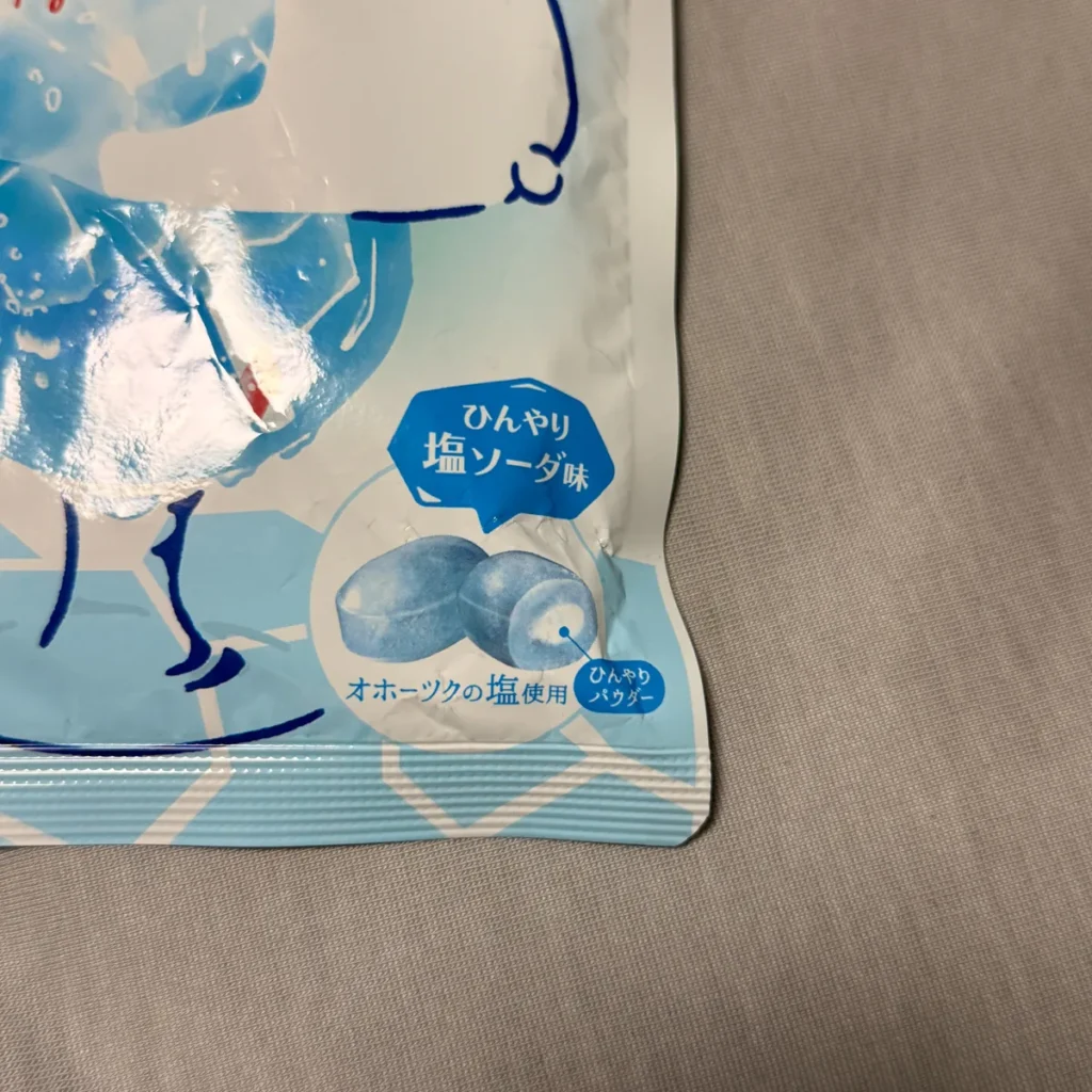 먹어보니 소다맛이 느껴지는데, 중간중간 박하사탕처럼 화한 느낌도 적당히 느껴지는 맛이라 식사 후에 먹기 좋은 느낌이에요.