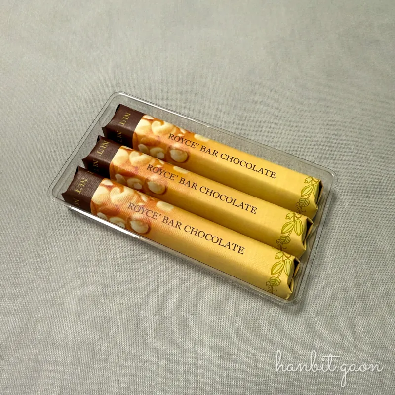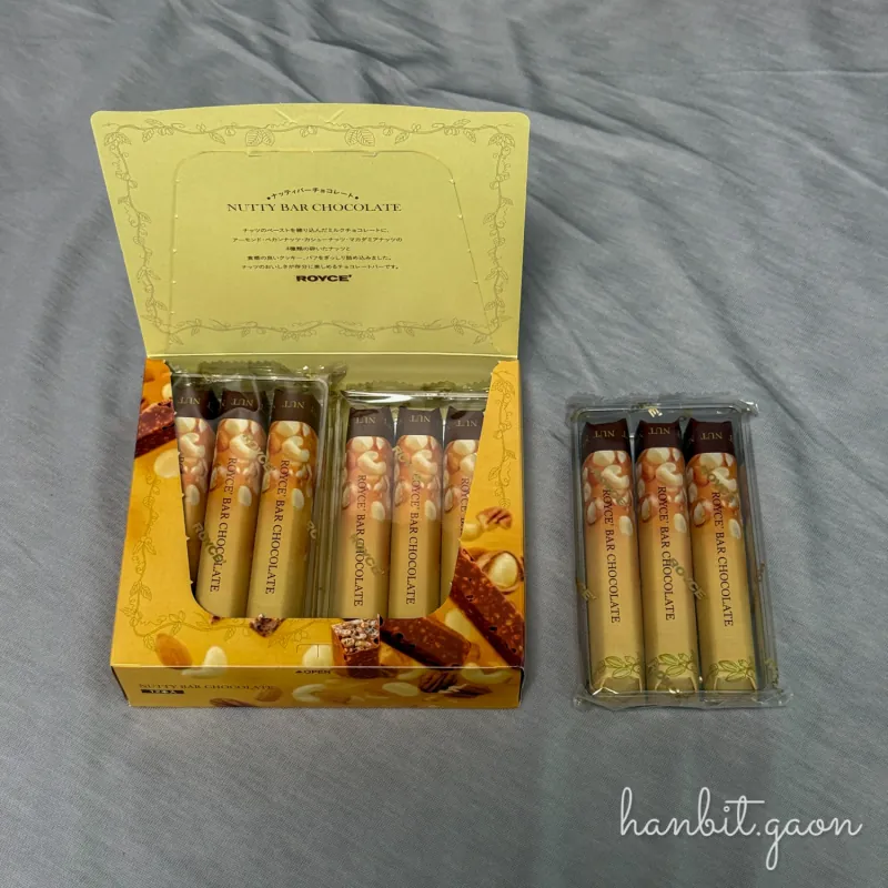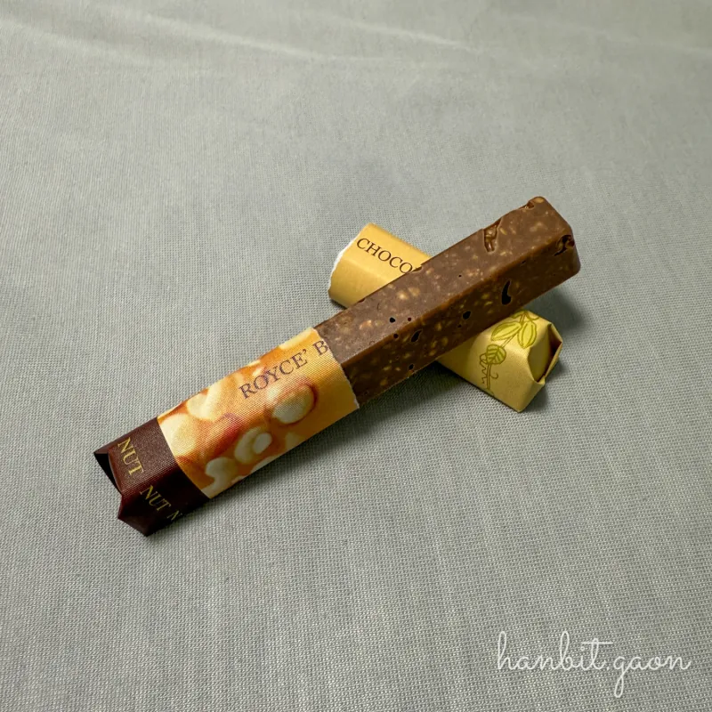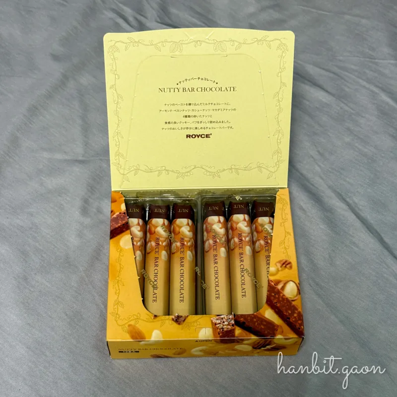 그 로이스에선 생초콜릿 뿐만 아니라 다양한 초콜릿 관련 상품들이 있는데, 이번에 본 것은 ’너티 바 초콜릿‘이었어요.