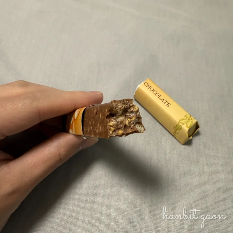 그런 느낌으로 초콜릿의 달달한 풍미와 속에 들어간 견과류의 바삭함이 제 취향에 딱 맞는 초콜릿이었어요.
