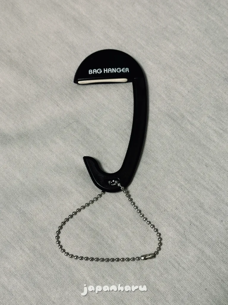 휴대가 가능한 사이즈라 백팩 옆 포켓에 넣어두었다가 필요할 때 바로 꺼내서 테이블에 걸고 가방을 걸어두면 되는 간편한 방식!