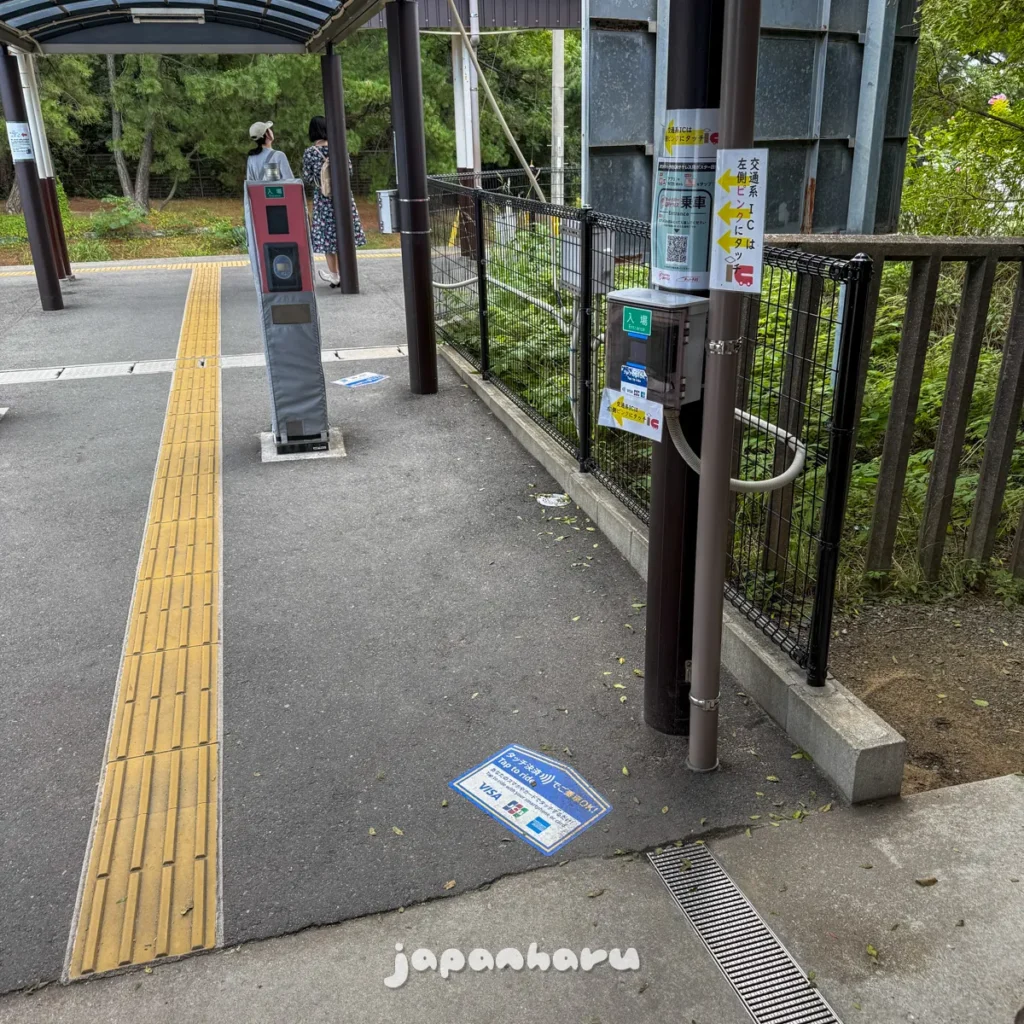 마린월드를 갈 때 이용했던 우미노나카미치역은 이런 식으로 기둥에 터치결제 단말기가 붙어 있었어요.