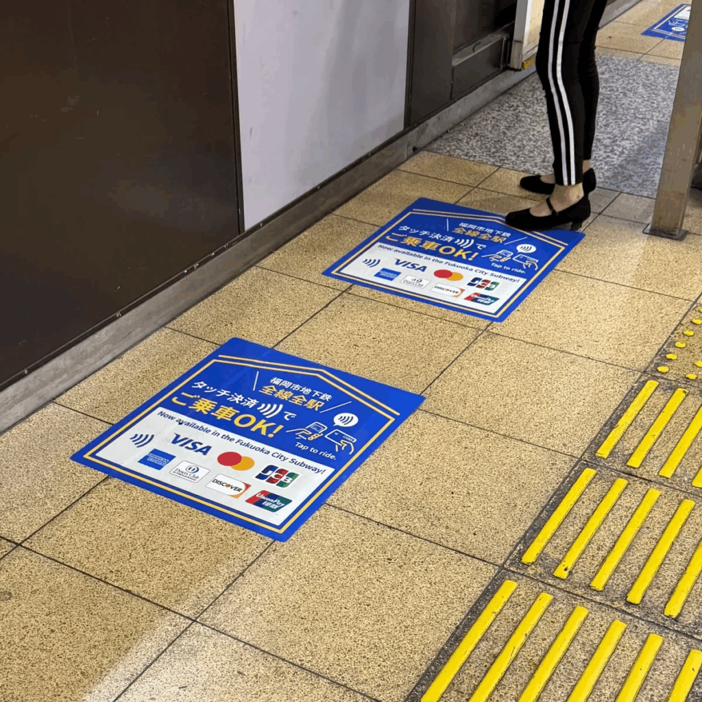 후쿠오카 지하철에서 본 모습인데, 사진처럼 터치결제 가능한 개찰구는 개찰구 바닥에 크게 표시되어 있어요!