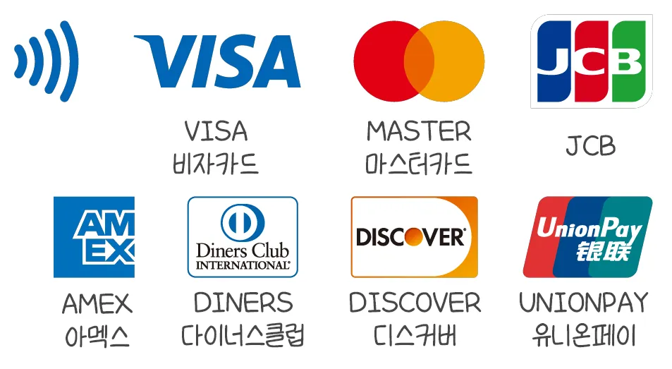 💳 터치결제 가능 브랜드: 비자(VISA) / 마스터카드(Master) / JCB / 아멕스(AMEX) / 다이너스클럽(DINERS) / 디스커버(DISCOVER) / 유니온페이(UNIONPAY, 은련)