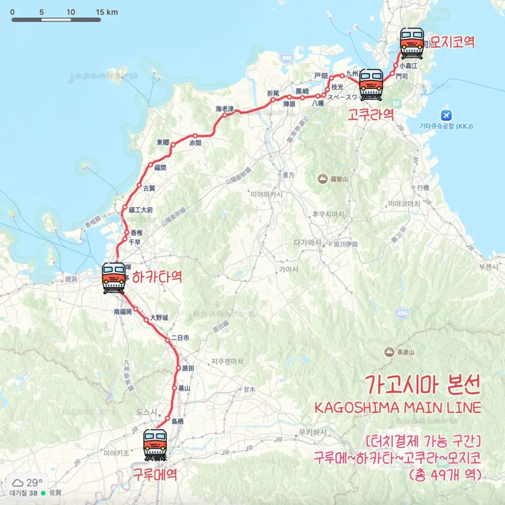🔴 가고시마 본선: 구루메역~하카타역~고쿠라역~모지코역 [총 49개 역]