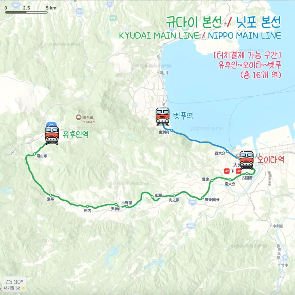 🟢 규다이 본선: 오이타역~유후인역 [총 13개 역]