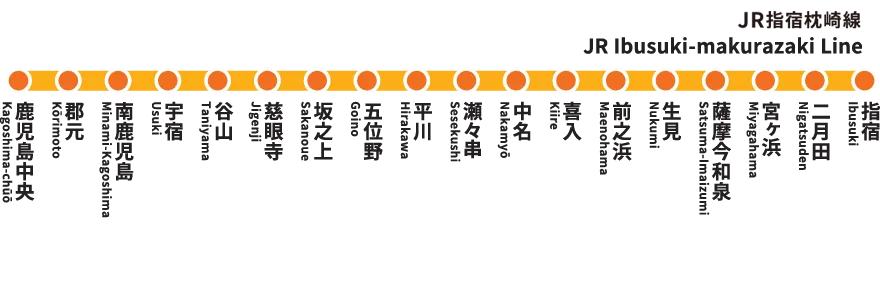 - 이부스키마쿠라자키선: 가고시마추오역~이부스키역 [총 18개 역]