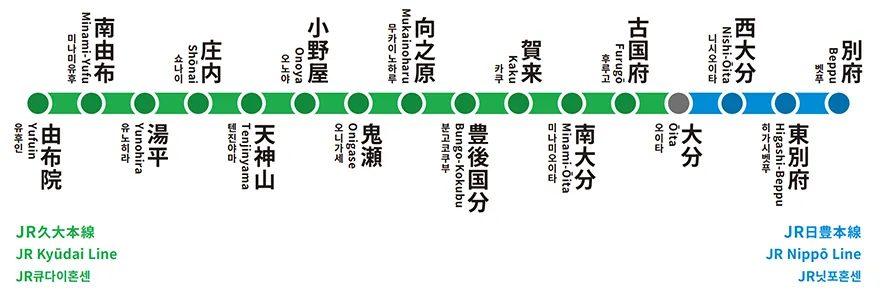 - 규다이 본선: 오이타역~유후인역 [총 13개 역]