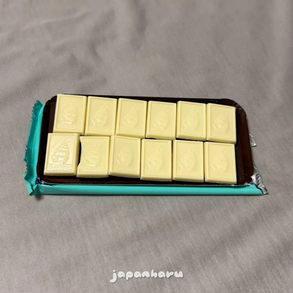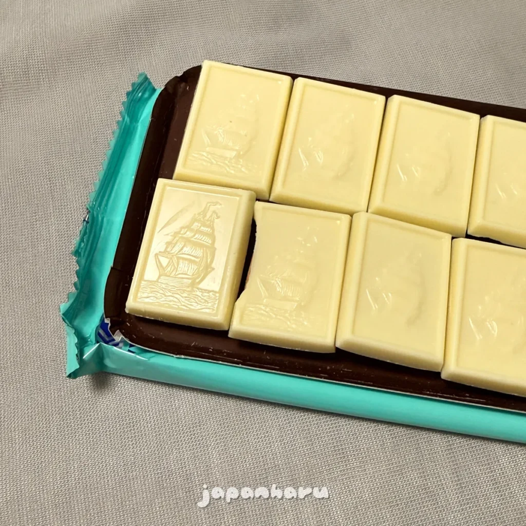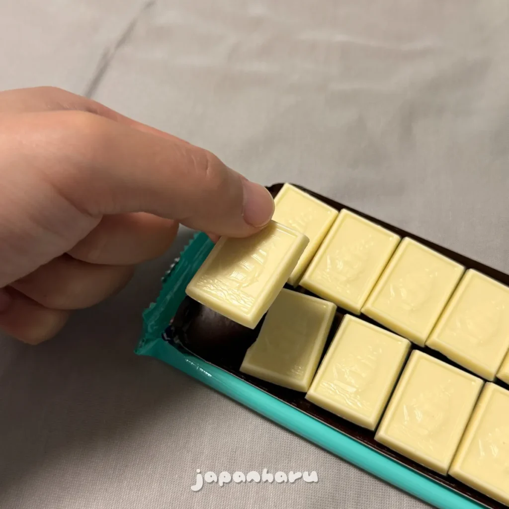 겉포장에는 화이트 초콜릿과 비슷한 이미지가 그려져 있고, 제품 색도 하얀빛을 띄고 있어요.