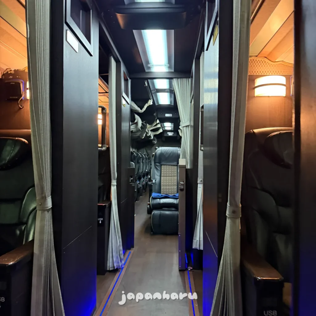 오야스미 휴식을 마치고 버스가 출발하면서 버스 내의 조명은 꺼졌어요.