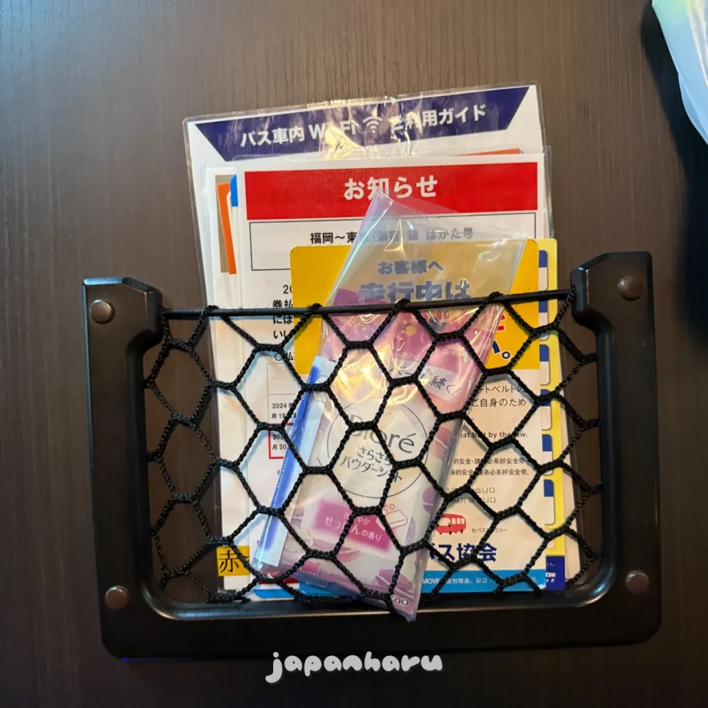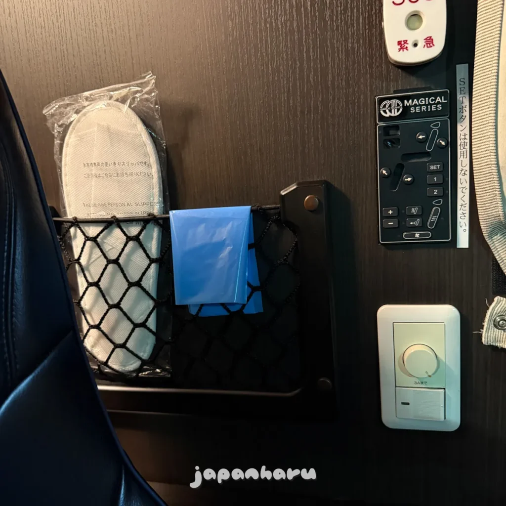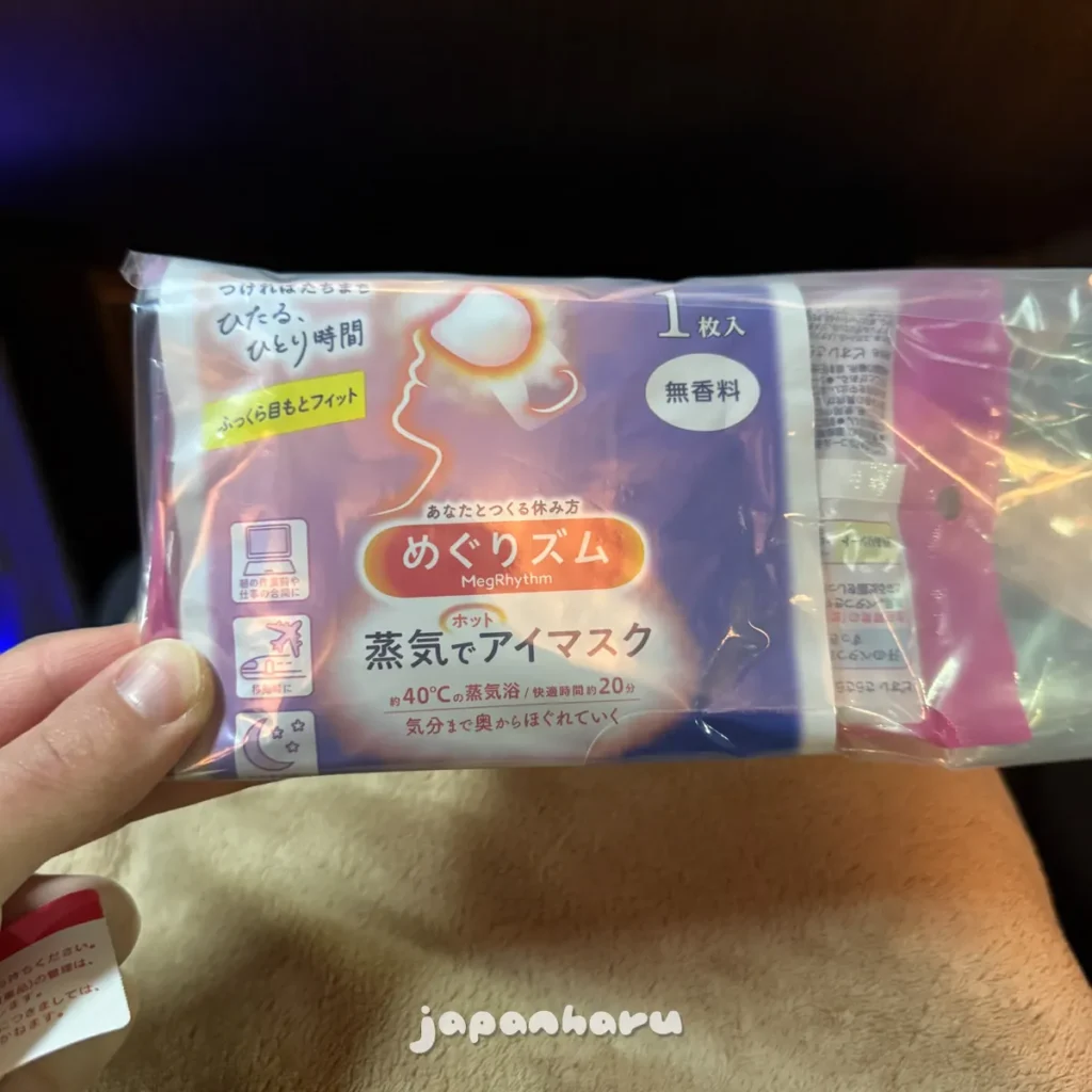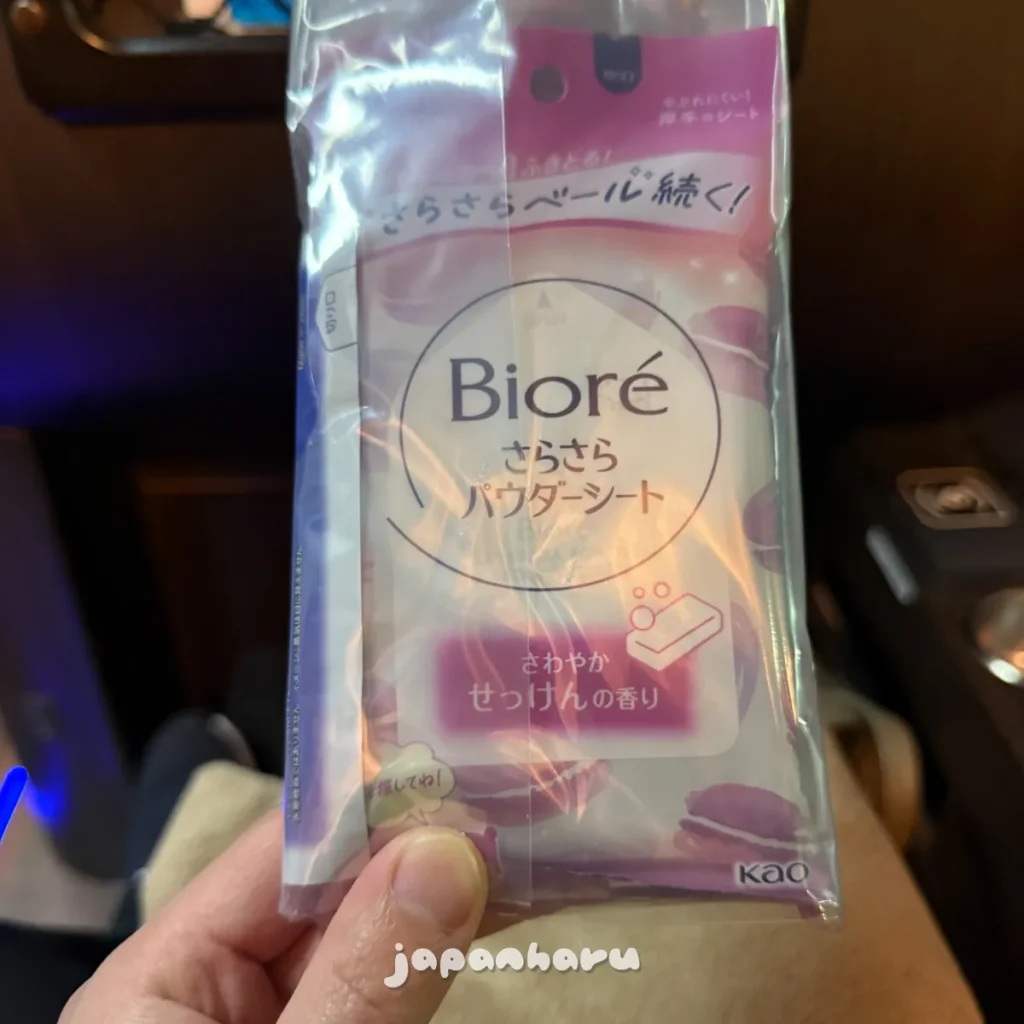 ‘뭘 이런것까지 주나…’싶어서 니시테츠 홈페이지를 확인해보니 3열 좌석인 비즈니스 시트는 아이마스크만, 프리미엄 시트는 사라사라 시트와 아이마스크를 주는 것 같아요.