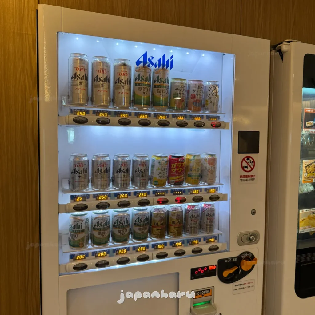 자판기에는 캔맥주와 같은 술도 팔고 있어요.