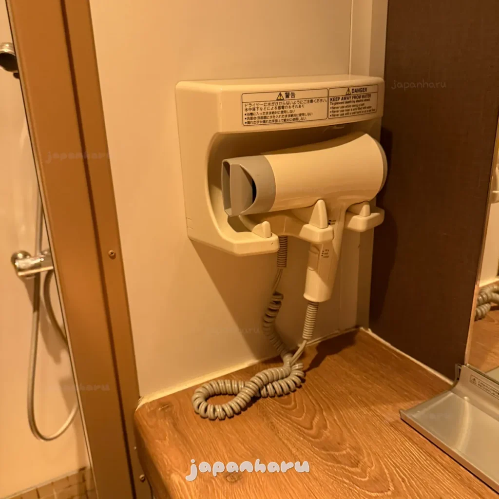 쓰가루페리의 샤워룸은 자유롭게 쓸 수 있고, 샴푸/컨디셔너/바디워시에 헤어드라이어도 있다는게 장점이에요 ☺️