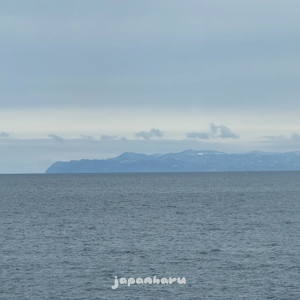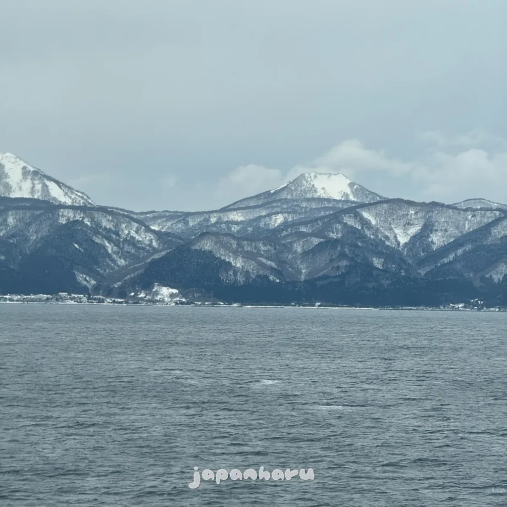 왼쪽의 쓰가루 반도도 좀 더 선명히 보이는데 겨울철이라 그런지 곳곳에 눈이 쌓여있는 모습이네요.