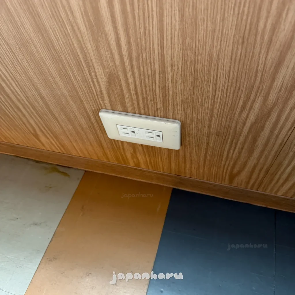 이렇게 좌석 앞쪽 벽면에 콘센트도 있어서 충전도 편하게 할 수 있어요.