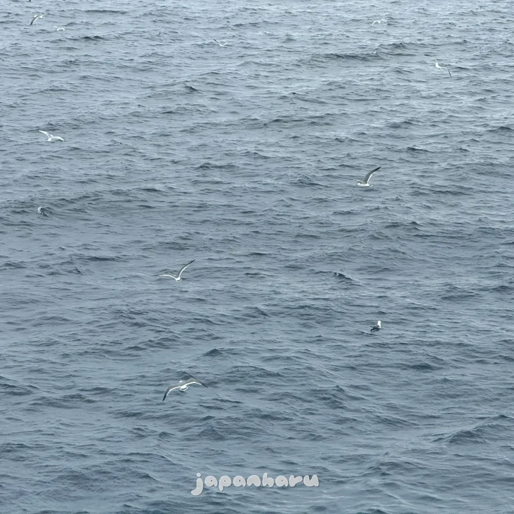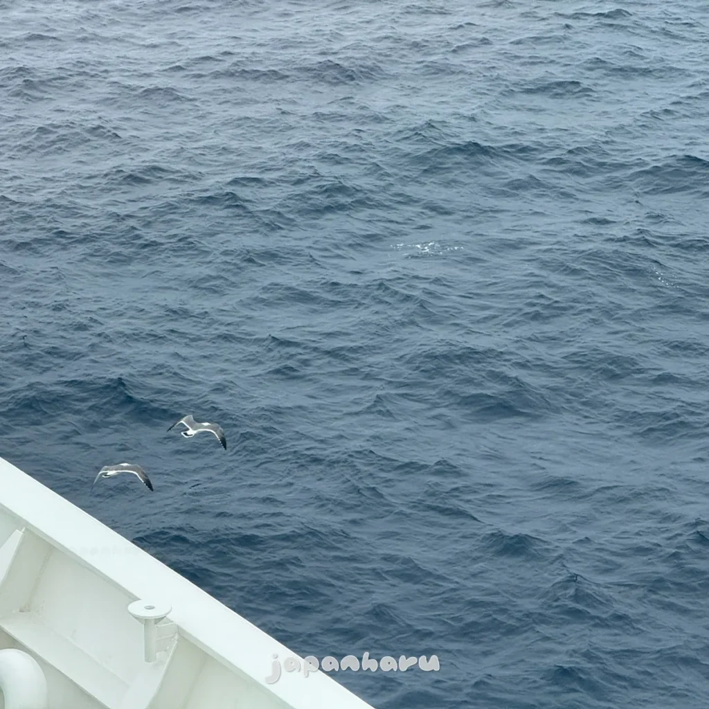 출항하고 약 1시간 정도 지났을 무렵, 페리는 무난하게 잘 가고 있어요.