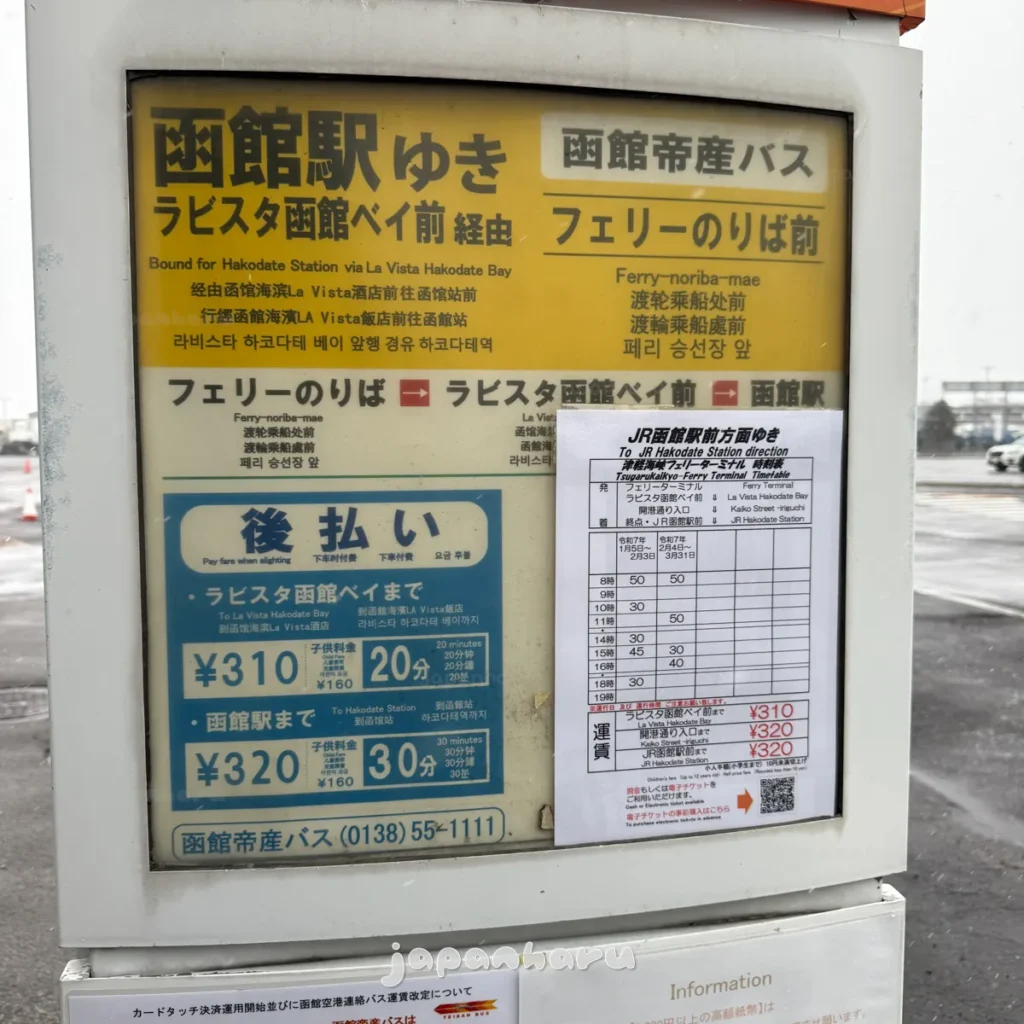 페리 터미널은 하코다테의 중심지라 할 수 있는 하코다테역과는 거리가 조금 있어서 버스를 타고 가야해요.