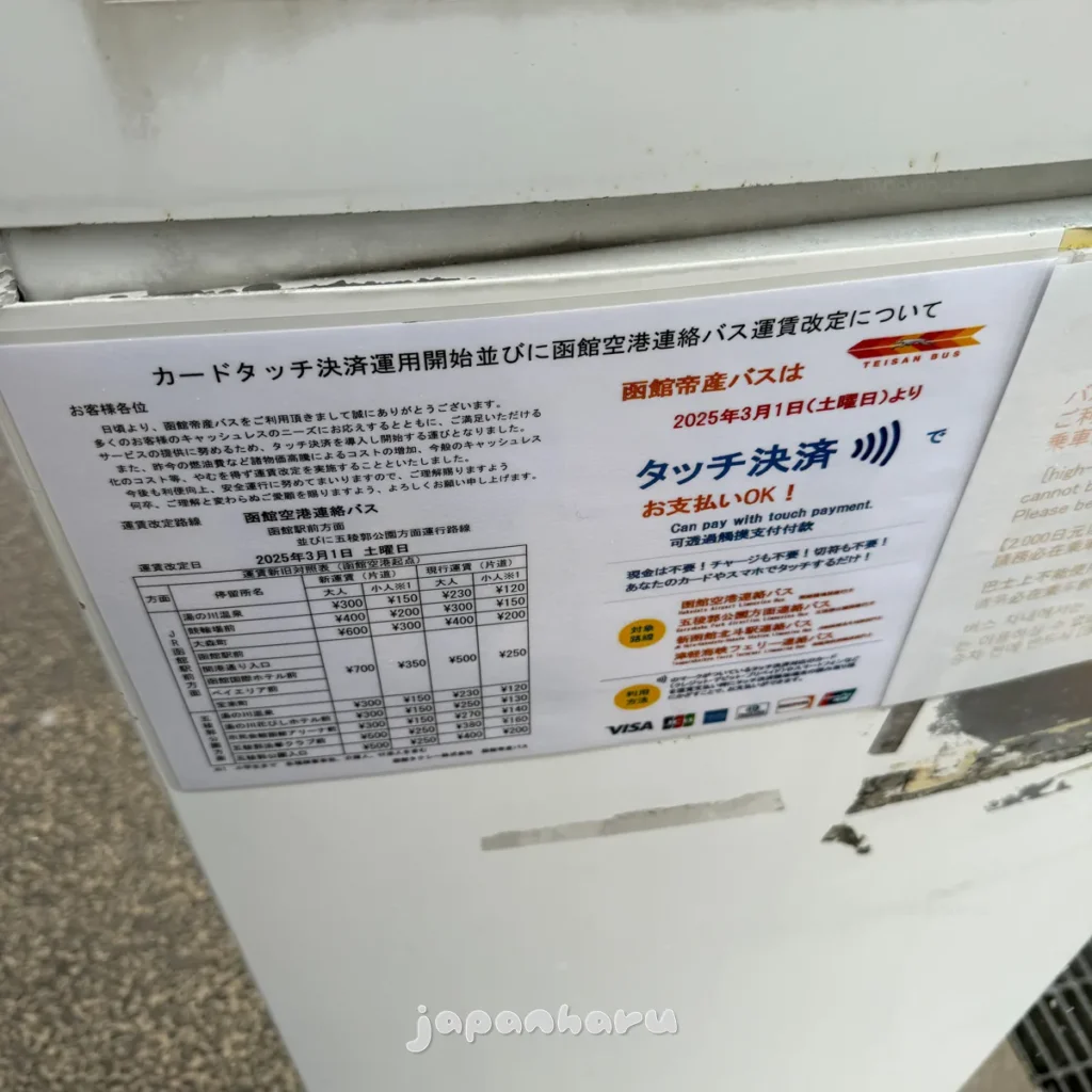 ‘라 비스타 하코다테 베이’까지는 310엔, ‘하코다테역 앞’까지는 320엔인데 이 때는 아직 현금결제만 가능했어요.