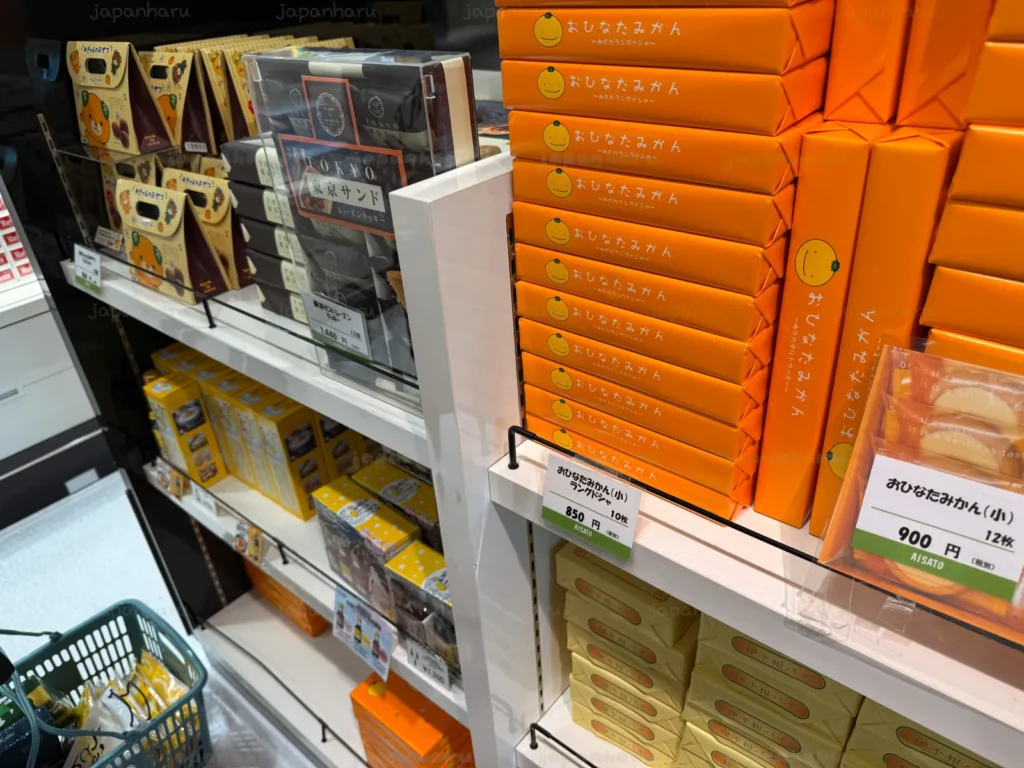 왠지 모르겠지만 마쓰야마 특산품들 사이에 있는 도쿄샌드… 😅