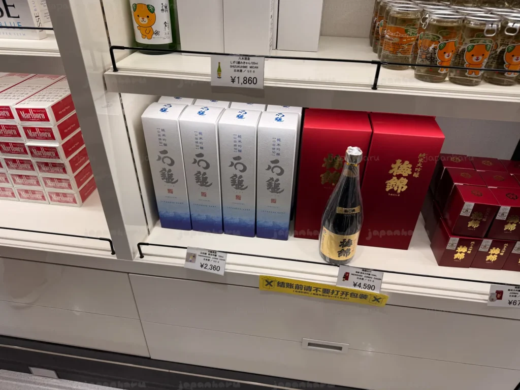 (이제 국내에 들어올 때 면세 기준이 술 병 수 제한이 사라지고 2L 제한만 있어서 이런 작은 사케들을 선물용으로 여러 캔 사는 것도 맘 편히 살 수 있게 되었네요 ☺️)