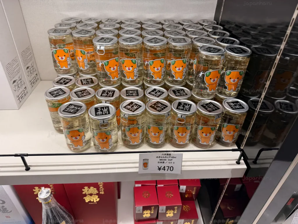 에히메현의 마스코트 캐릭터 ‘미컁’이 그려진 유리잔 사케도 있었어요 ☺️