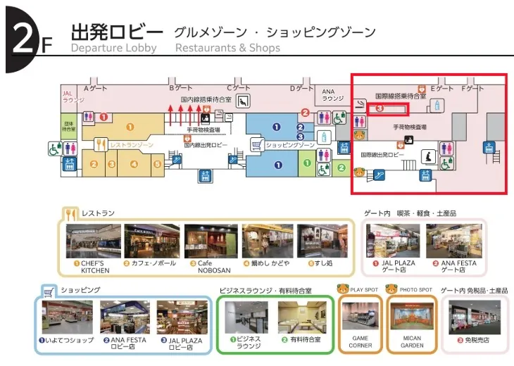 위의 마쓰야마 공항 평면도를 보면 빨간 사각형이 국제선쪽인데, 그 안에 3이라고 적힌 작은 빨간색 사각형이 출국장에 있는 면세점이에요.