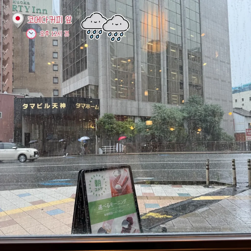 ⏰ 실제로 비는 오전 7~8시부터 조금씩 내리다가 점심 쯤인 오후 12시~1시 경에 폭우처럼 내렸고, 다시 오후 2시부터는 조금씩 내리는 정도였어요.