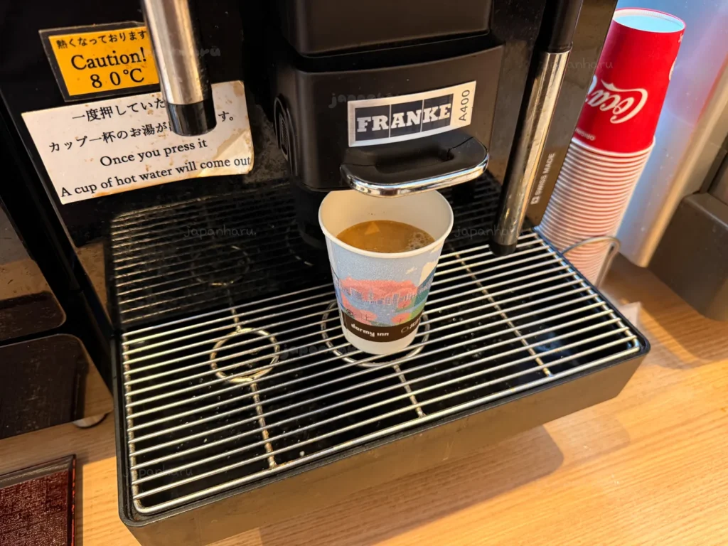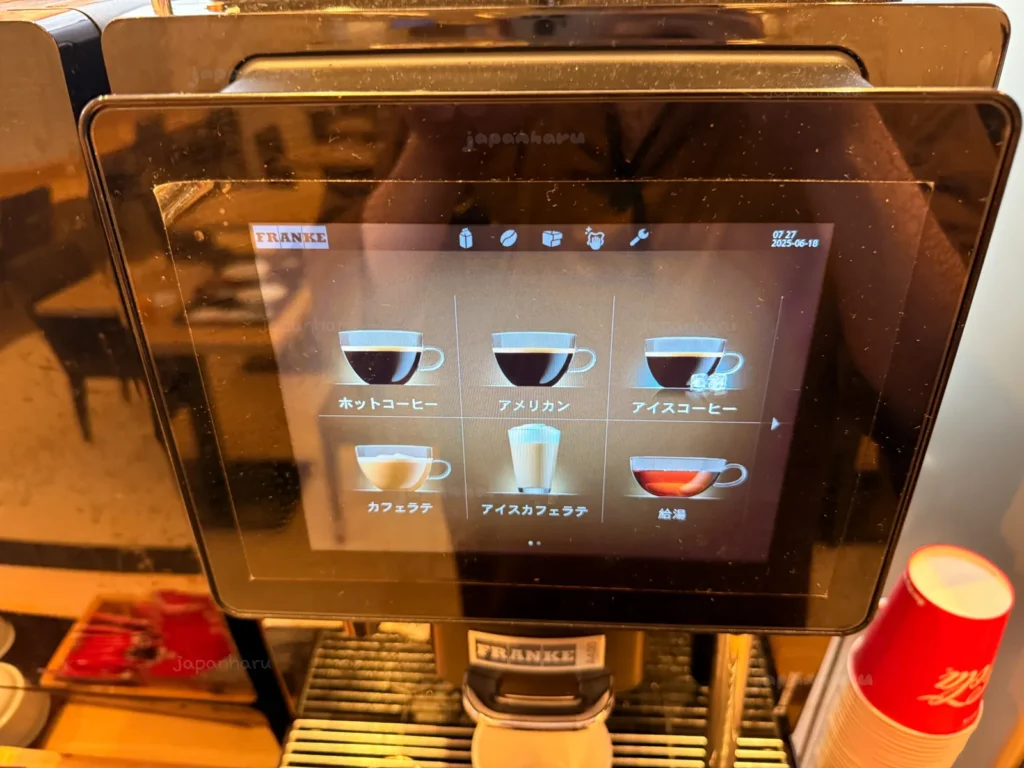 커피는 순서대로 아래와 같은데, 맨 왼쪽에 있는 핫커피를 누르면 우리나라 커피보다 쓴 커피가 나와요 ☺️