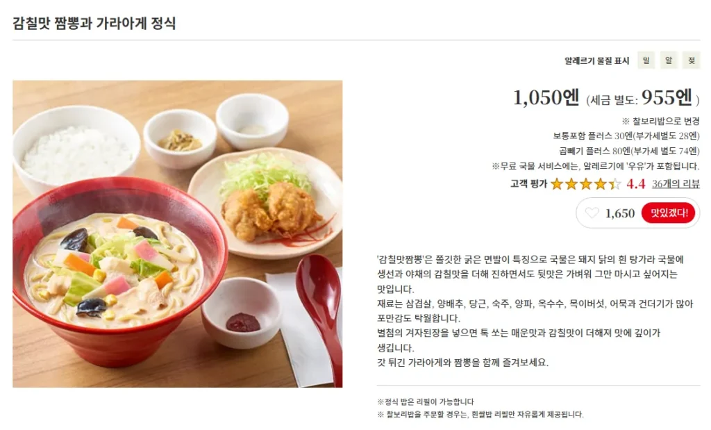 오늘의 메뉴: 감칠맛 짬뽕과 가라아게 정식