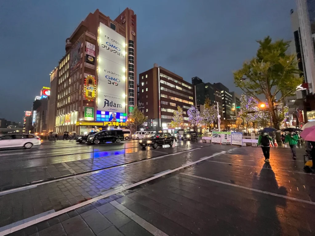 도톤보리까지 걸어가며 길을 구경하는데 어두운 시간에 비도 내리는 탓에 사진 품질은 좋지 않아요.