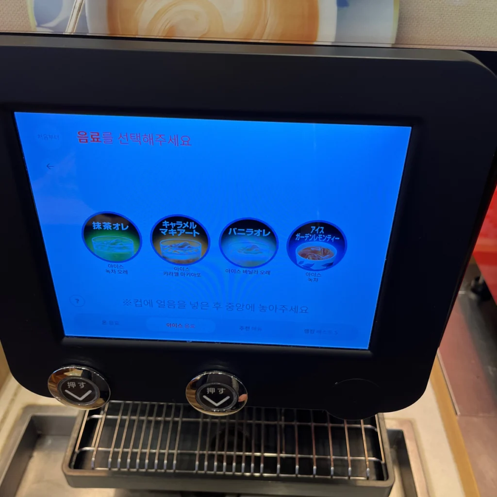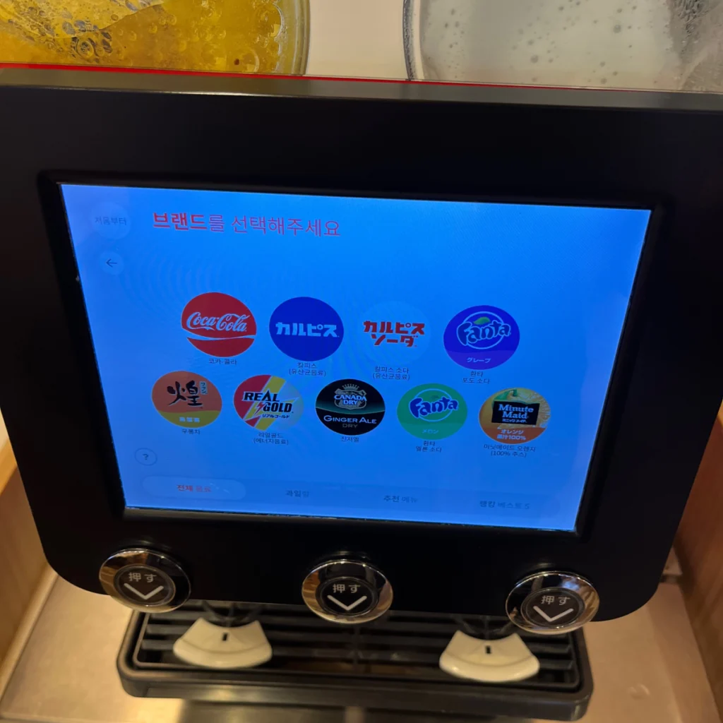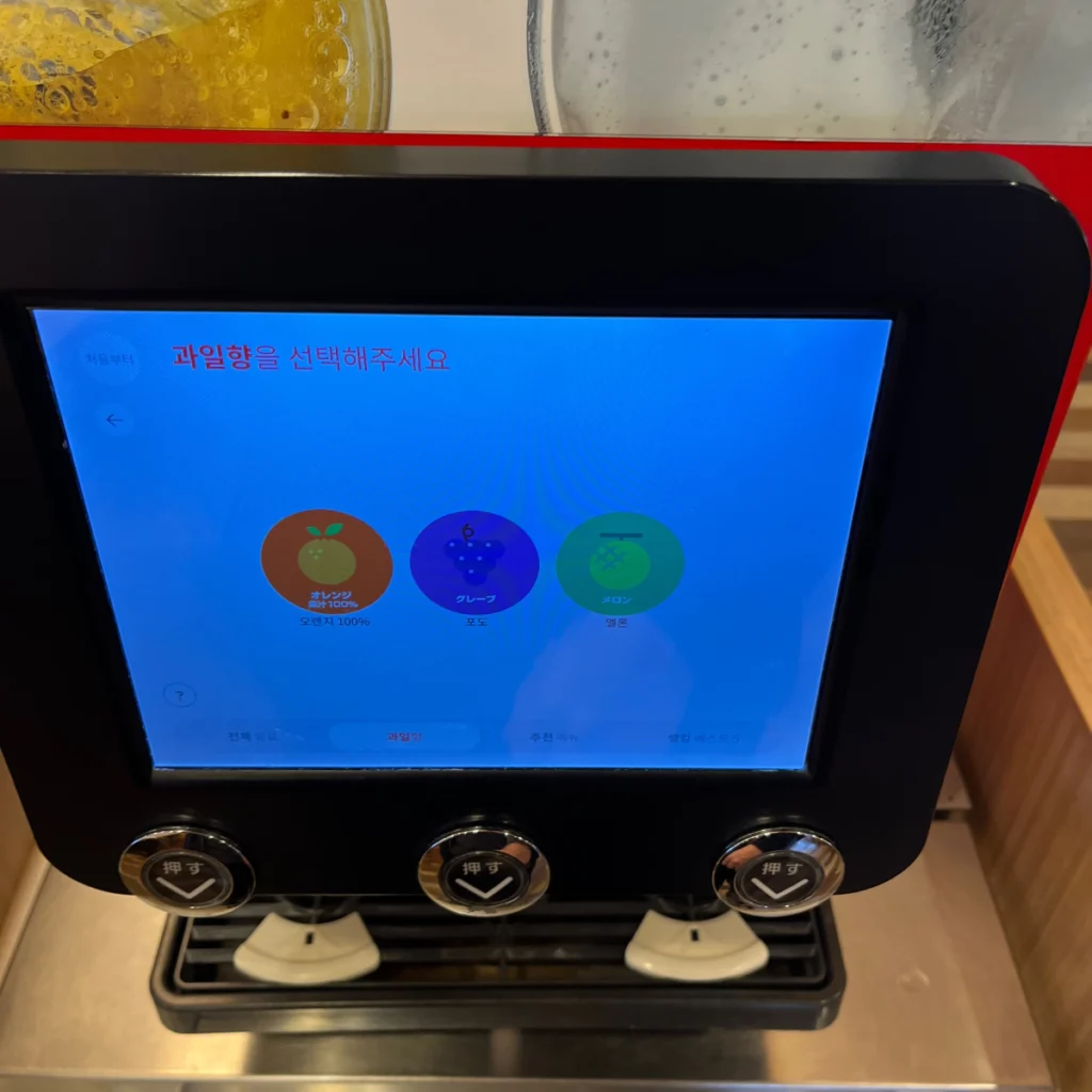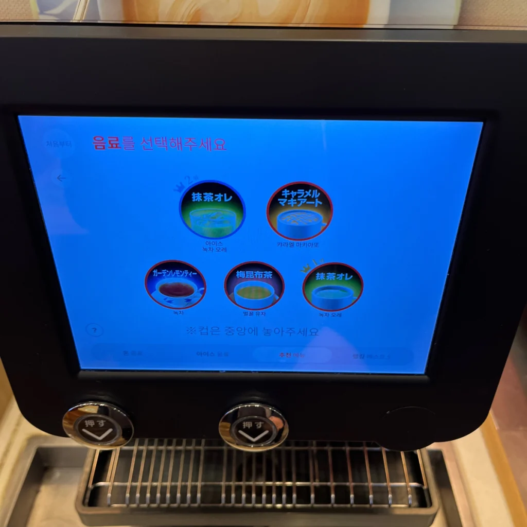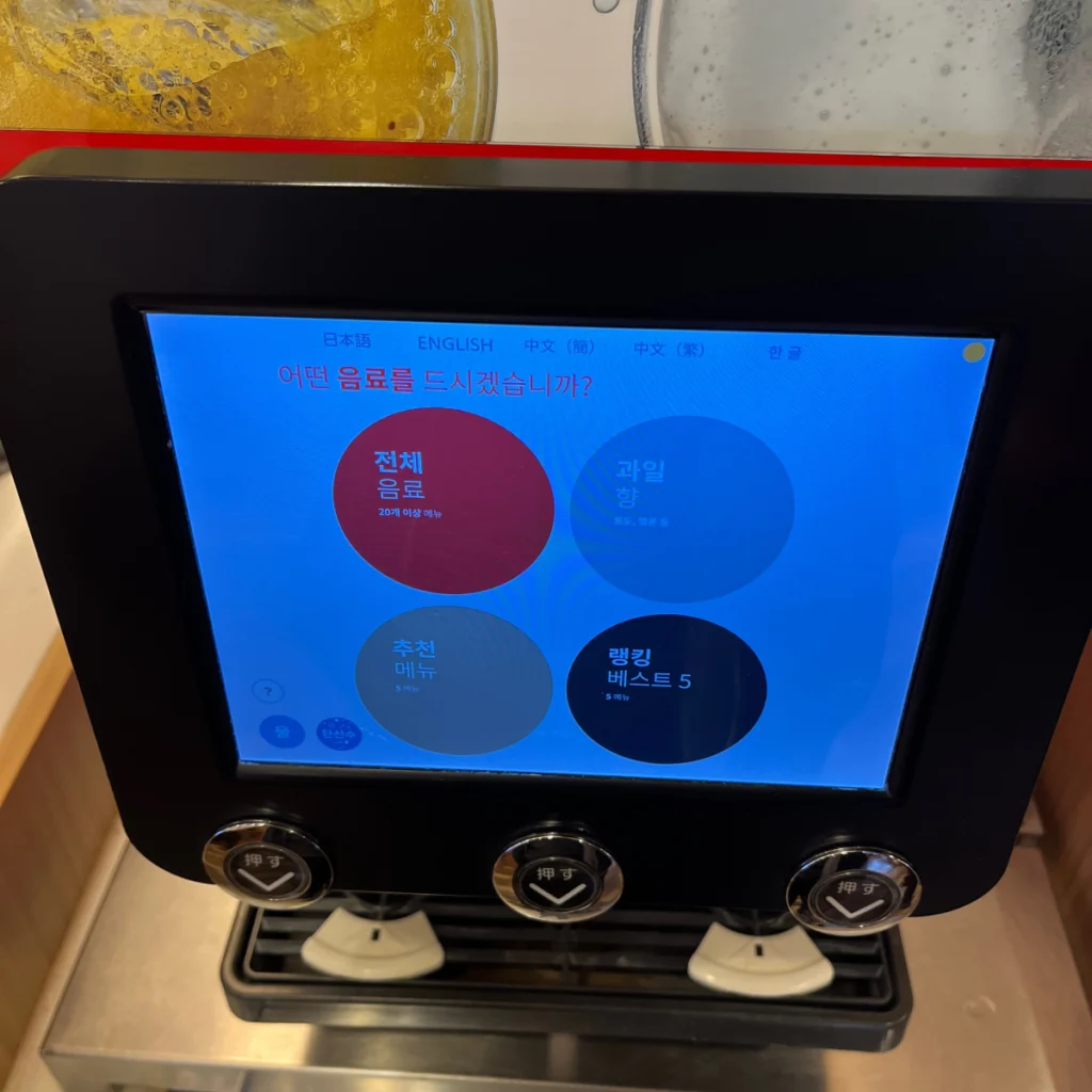 마침 시간 여유가 조금 있기도 해서 드링크바 기계에 어떤 음료들이 있는지 궁금해서 하나씩 눌러보면서 찍어봤어요!