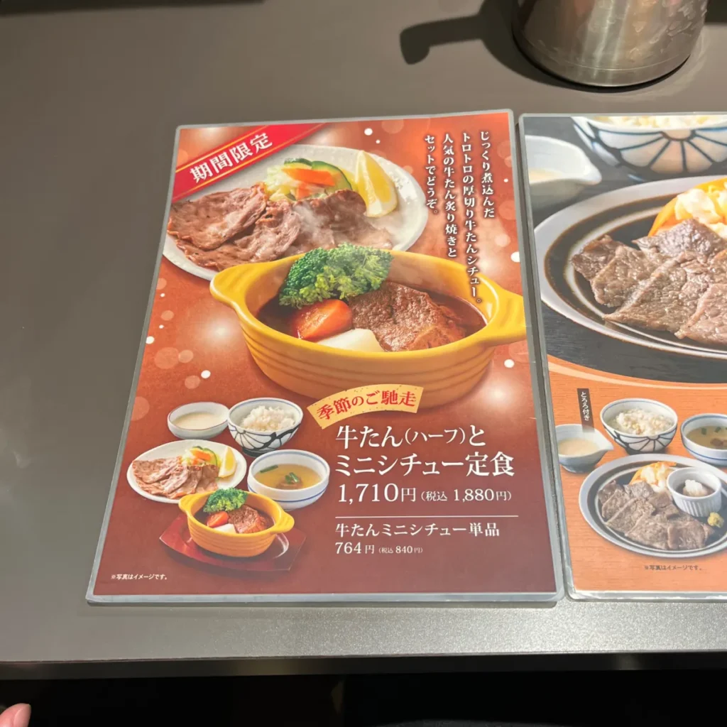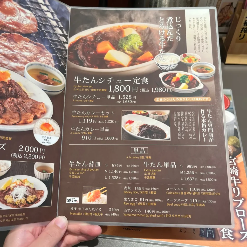 - 우설 토로로 정식: 1,780엔