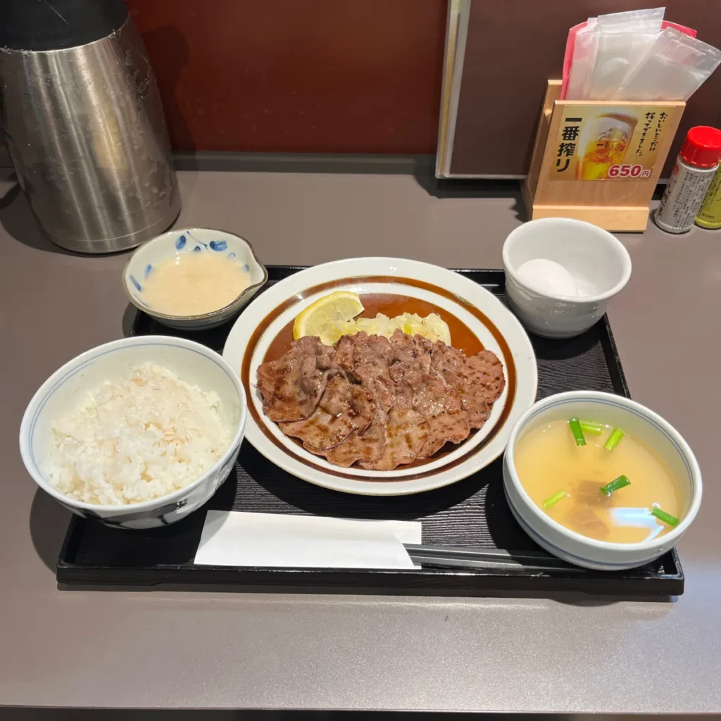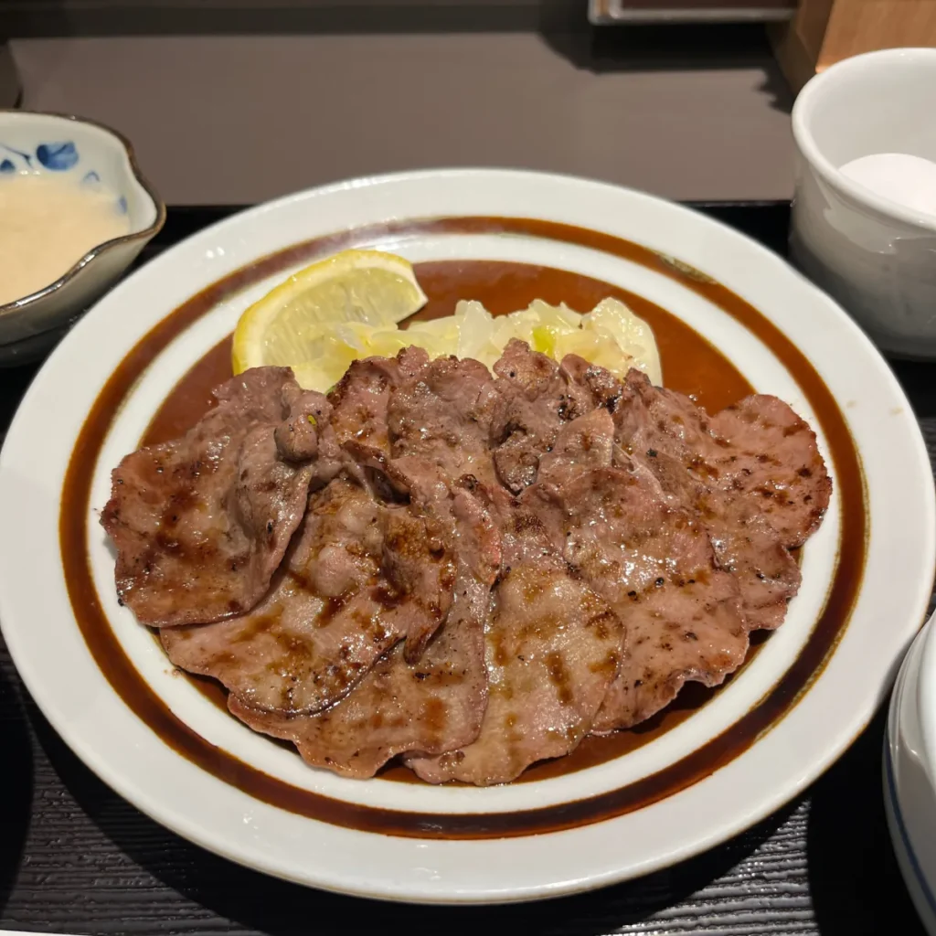 센다이에서 먹은 규탕은 두꺼운 느낌이었는데, 여기서 먹은 우설은 얇은 느낌이었어요.
