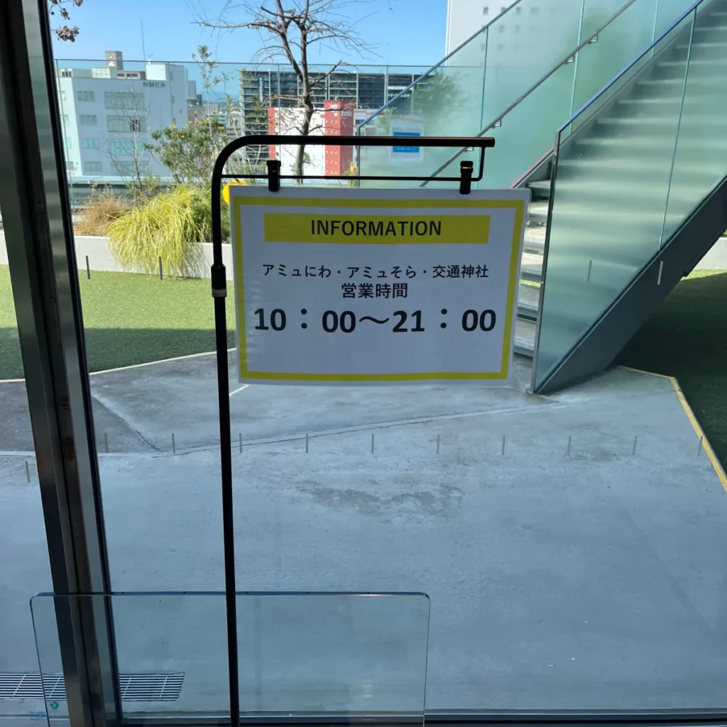 아뮤니와, 아뮤소라, 신사 모두 오전 10시부터 오후 9시까지 개방해요.