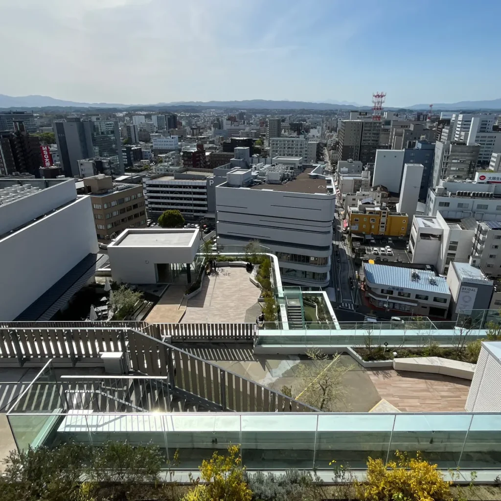 이렇게 미야자키역 주변이 한 눈에 보이는 옥상정원이에요.