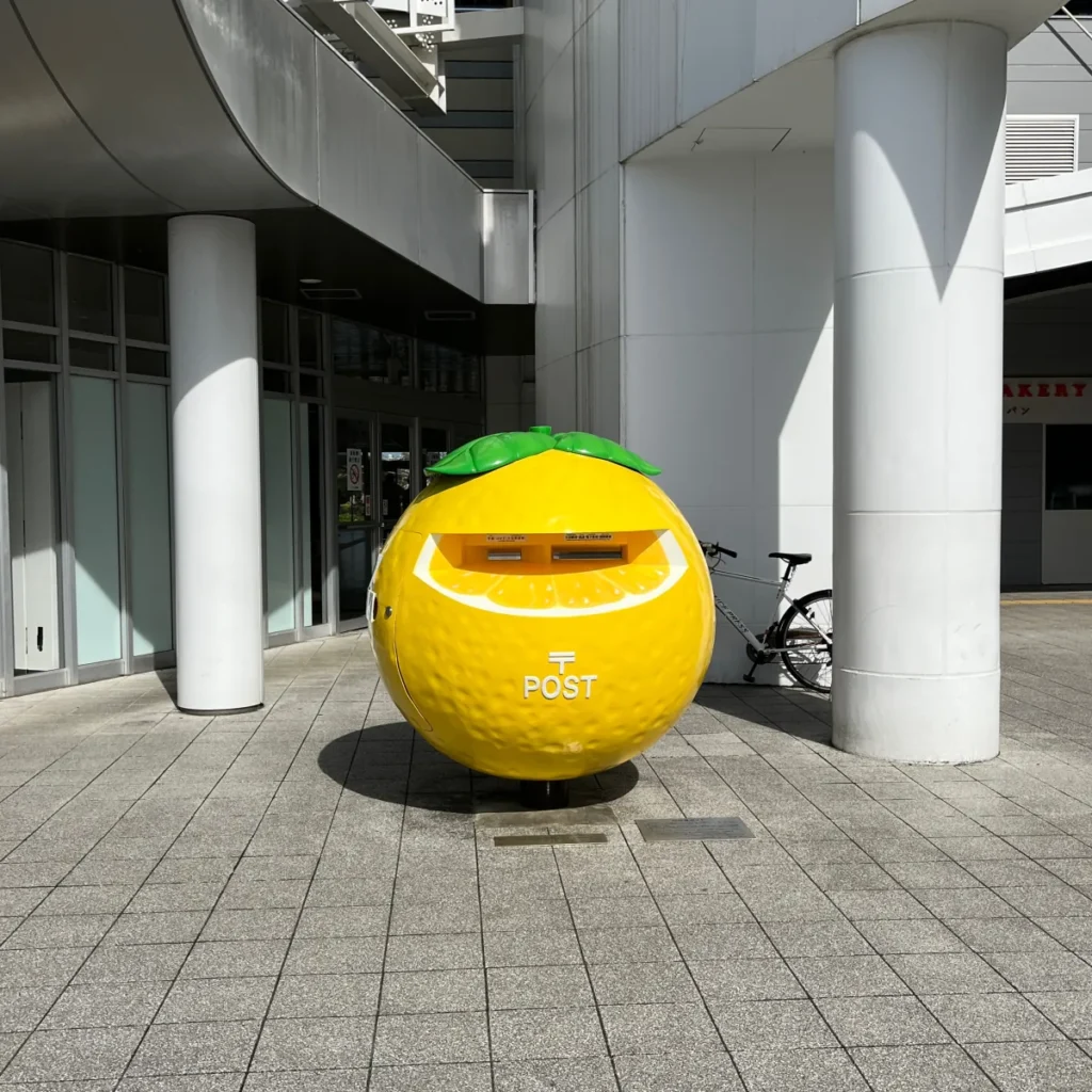 여담으로, 미야자키역 앞에는 감귤류의 일종인 ‘휴가나츠(日向夏)’라는 과일 모양을 한 우체통이 있어요.