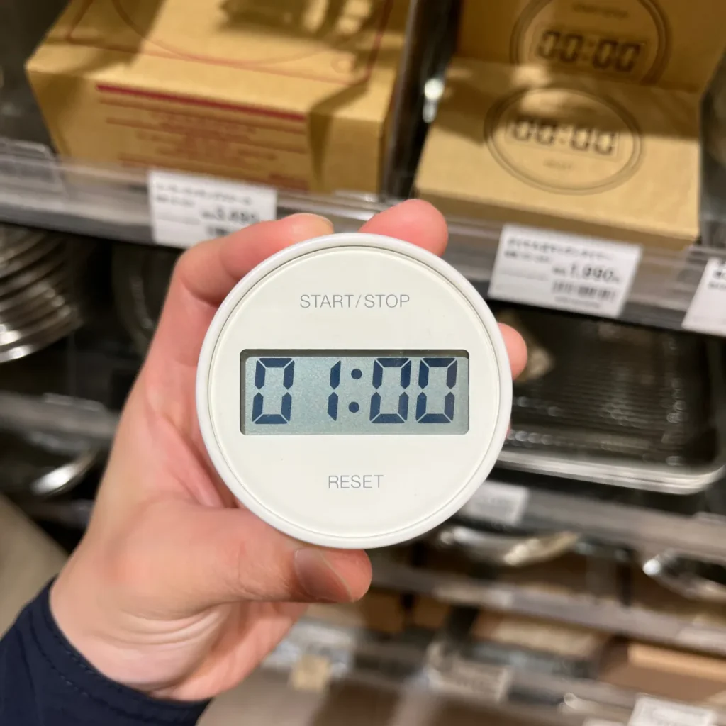 테두리를 돌려서 시간을 조절할 수 있는 방식인데, 돌리는 느낌이 꽤나 부드러워서 괜찮아보였지만… 타이머 하나가 약 2만원(1,990엔)이라 조금 고민이 되었어요 😅