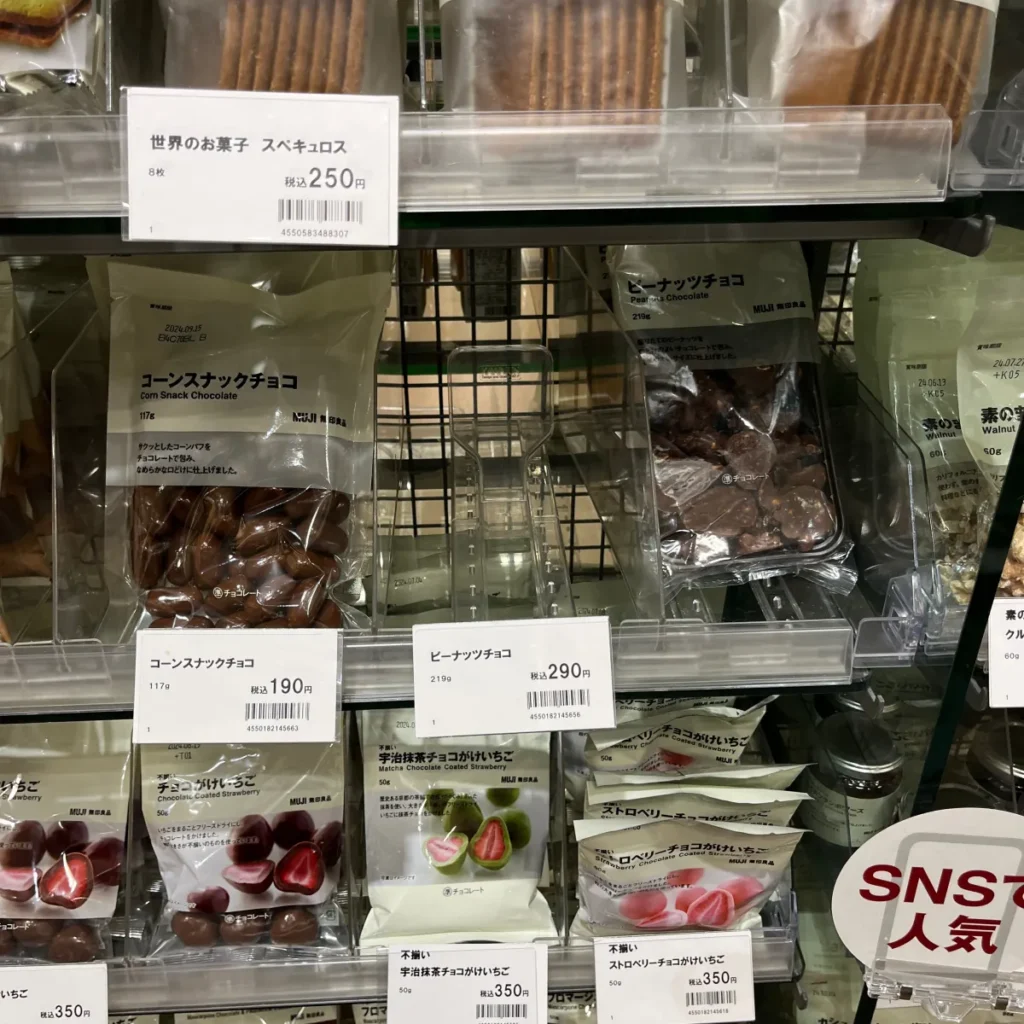 국내 무인양품에서 4,900원에 살 수 있는 피넛초콜릿도 여기에선 290엔!