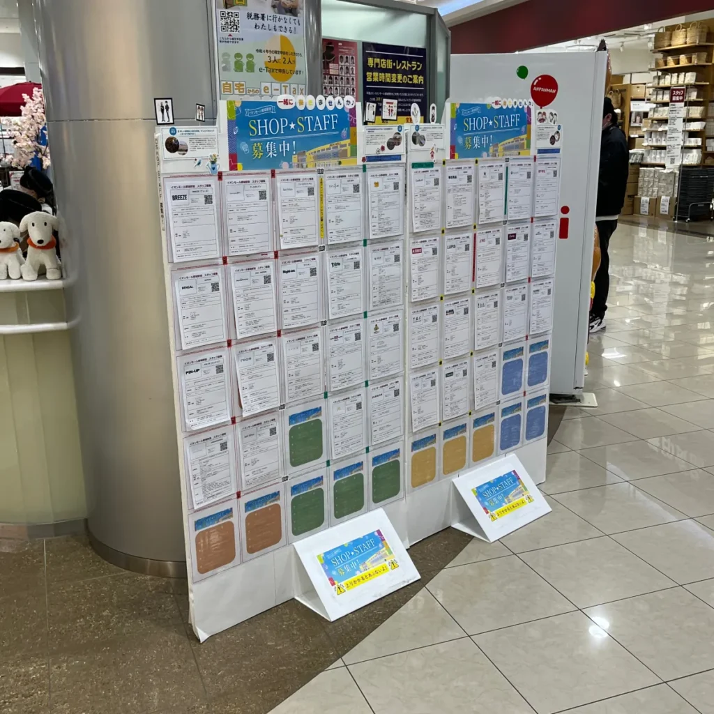 이온몰 내에서 돌아다니며 본 신기한 것이 하나 있다면, 쇼핑몰 내의 직원 모집 공고를 모아놓은 판넬이 있다는 점이었어요.
