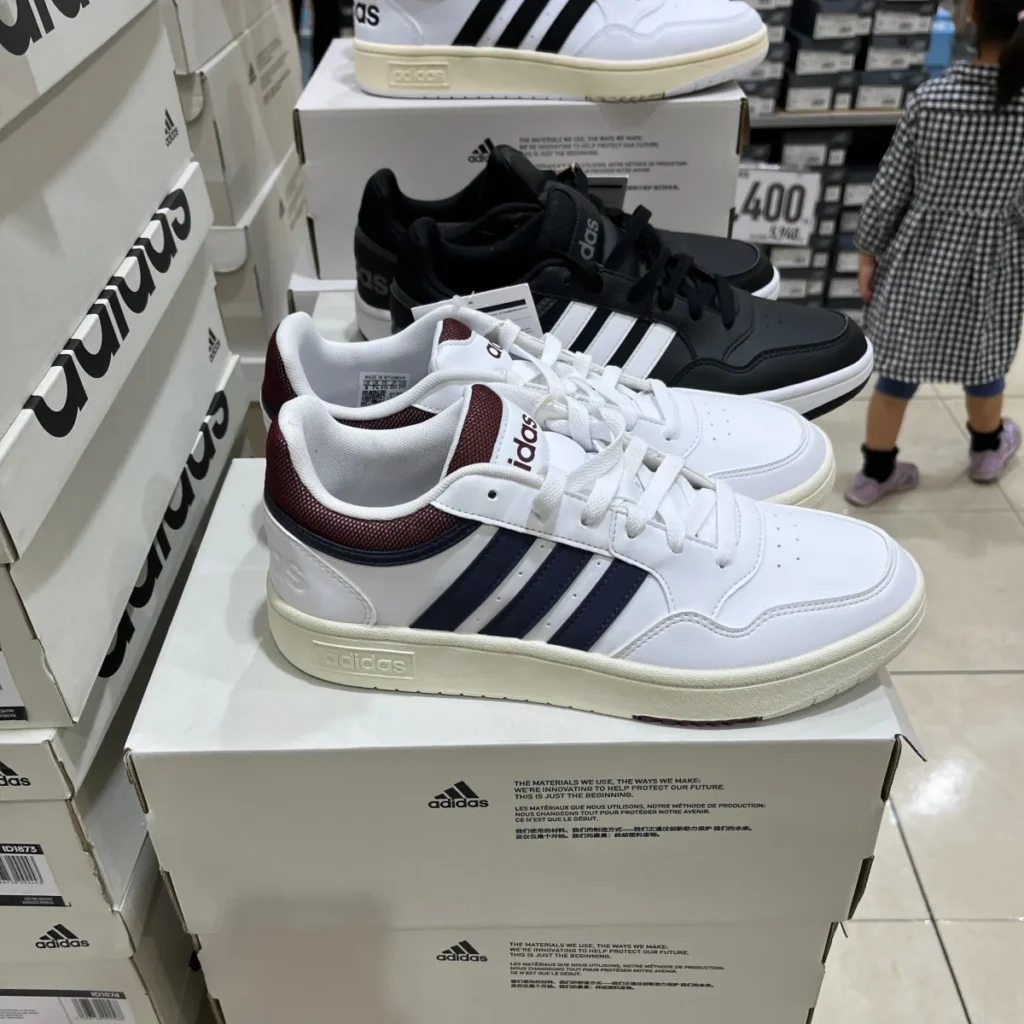 아디다스 스니커즈를 보는데 옆의 삼선과 상단의 라인이라는 디자인은 같은데 색 조합이 여러가지인게 구경하기에 재미있었어요.