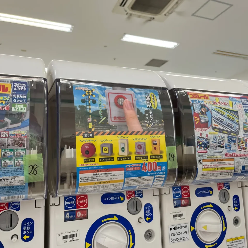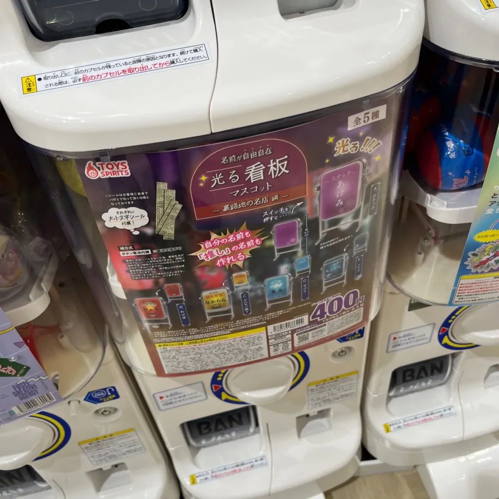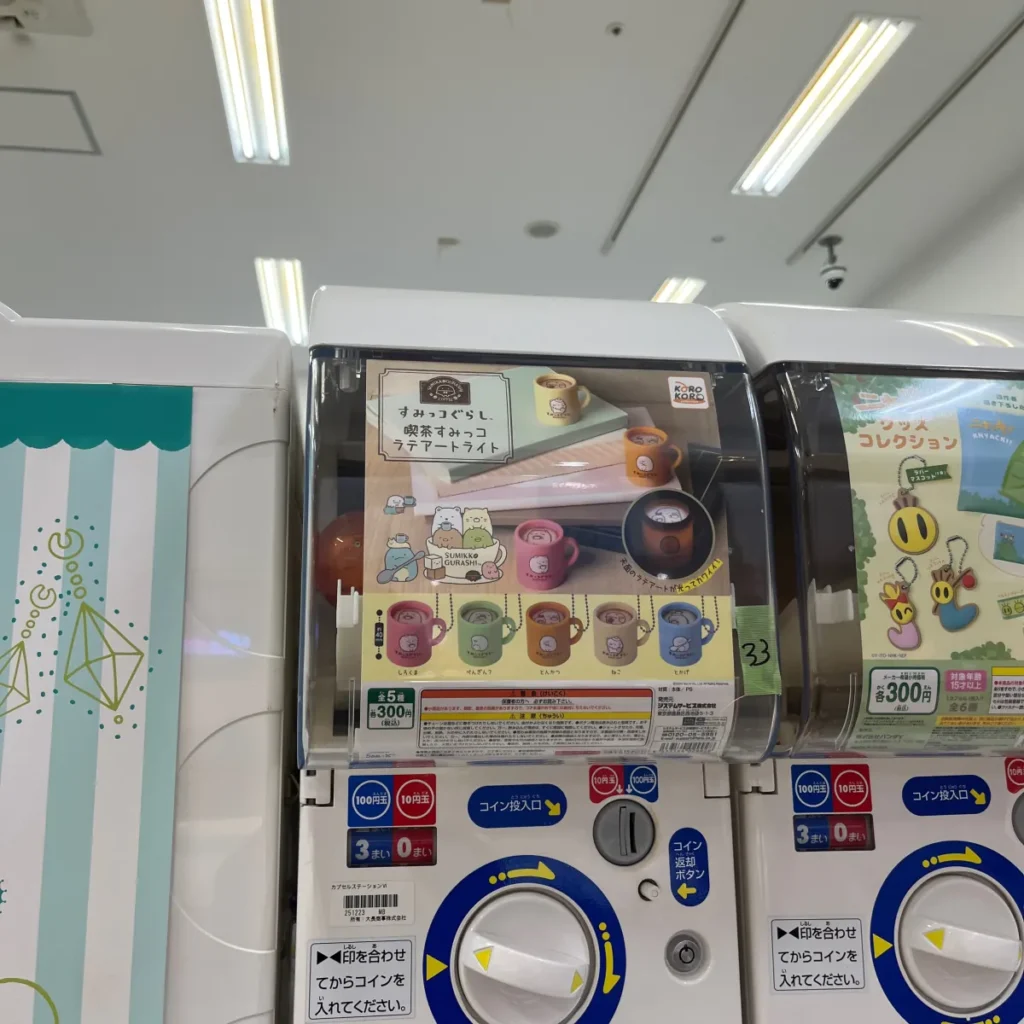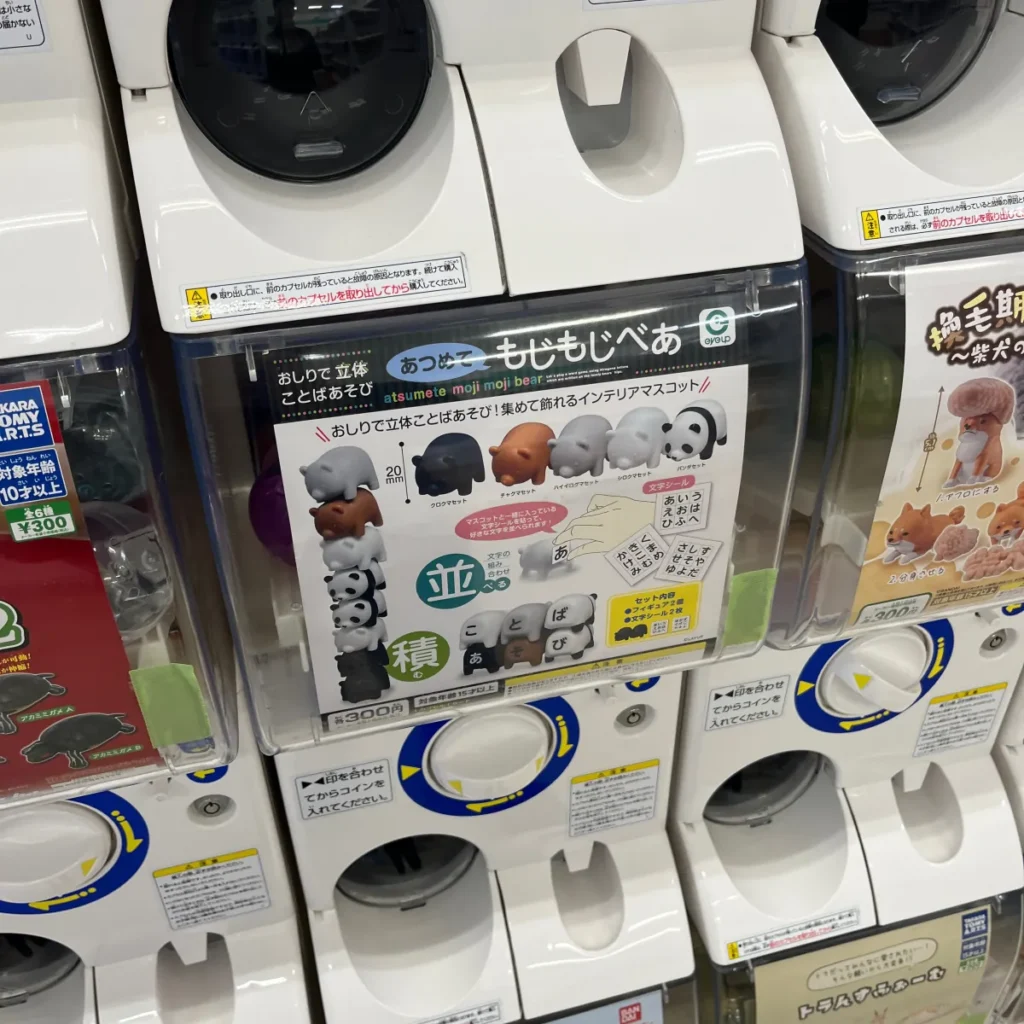 다시 구경하다가 또 다른 가챠샵이 보여서 보는데 그 중에 또 소리나는 가챠가 보여서 하나 뽑아봤어요.