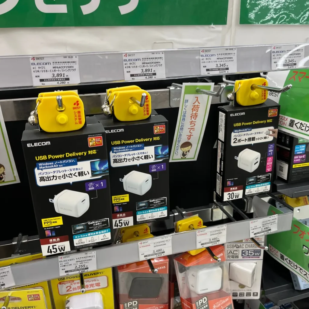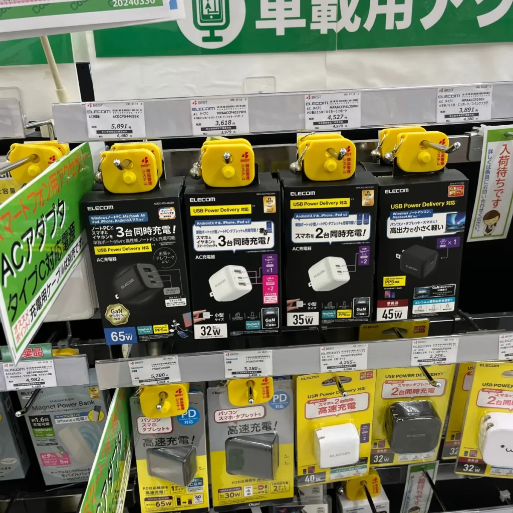 중간에 전자제품 판매하는 매장도 있어서 충전기도 구경해봤어요.