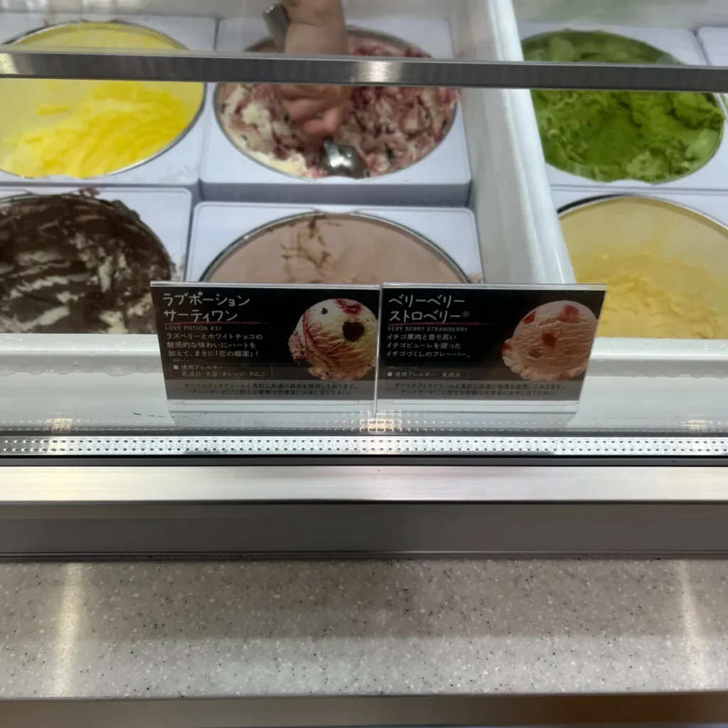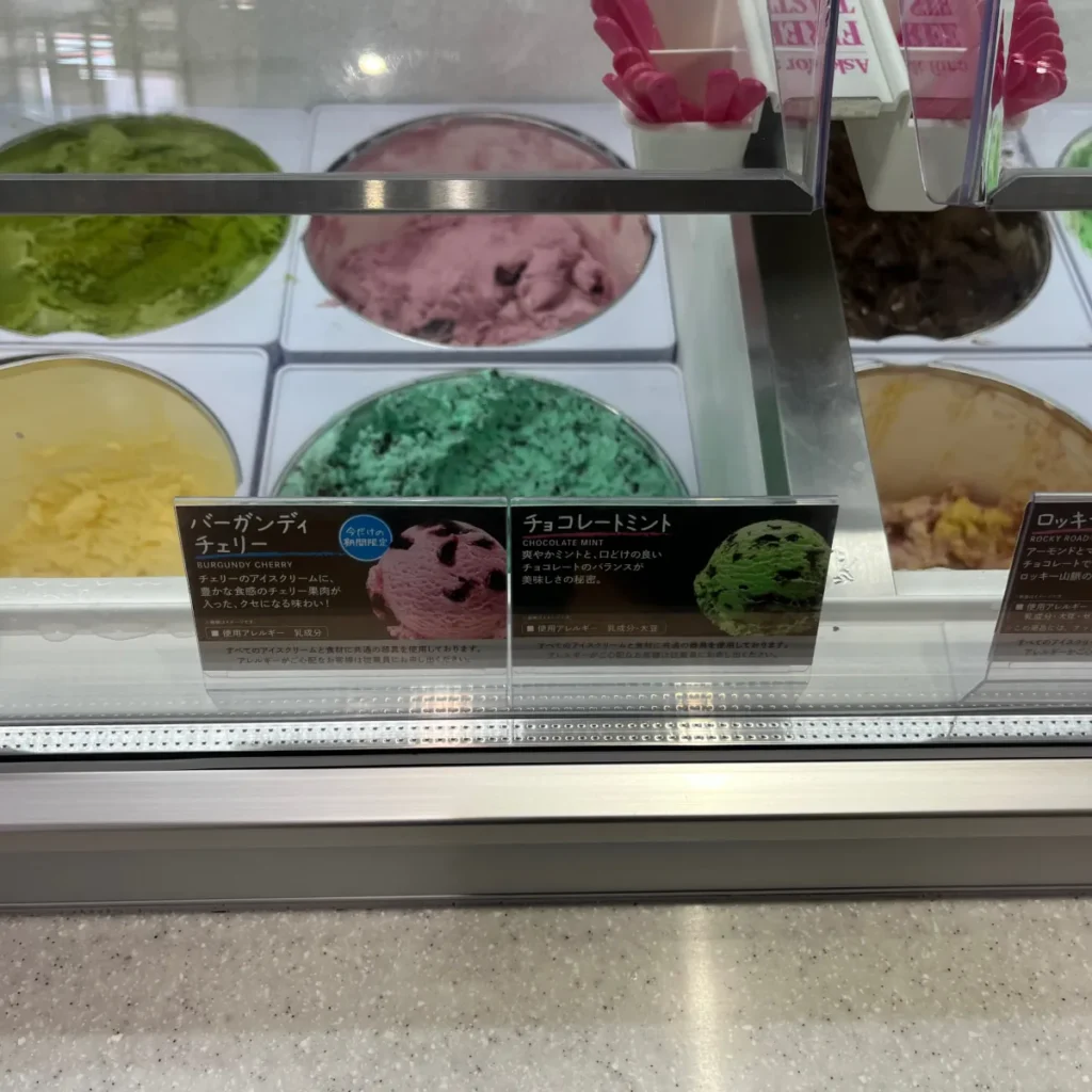 그 외에도 다양한 맛이 있는데 우리나라 배스킨라빈스에서도 볼 수 있는 메뉴도 있는가 하면, 일본에서만 보이는 메뉴도 있네요.