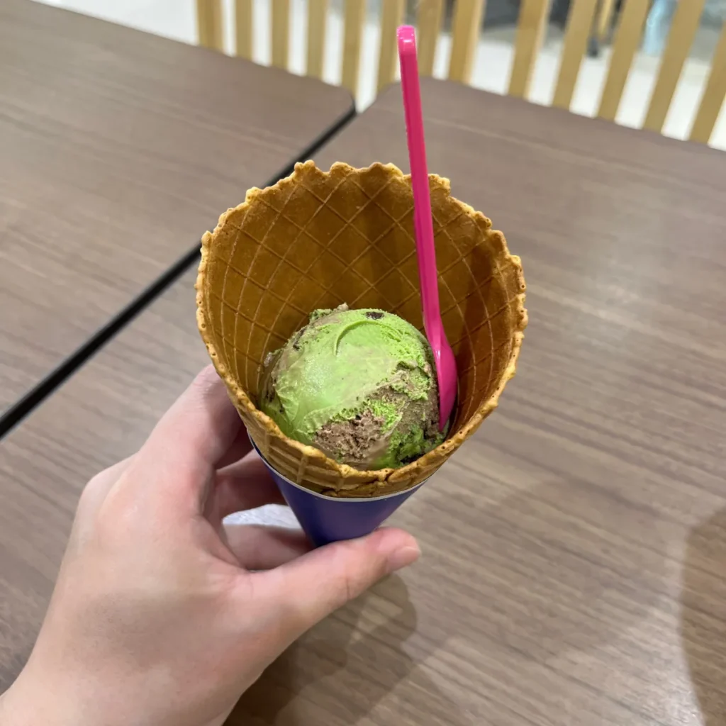 예전에 교토에서 한겨울에 먹었던 말차 아이스크림이 생각나는 맛인데, 초코맛이 더해진 느낌이라 초코맛을 좋아하는 저에겐 좋았네요 ☺️