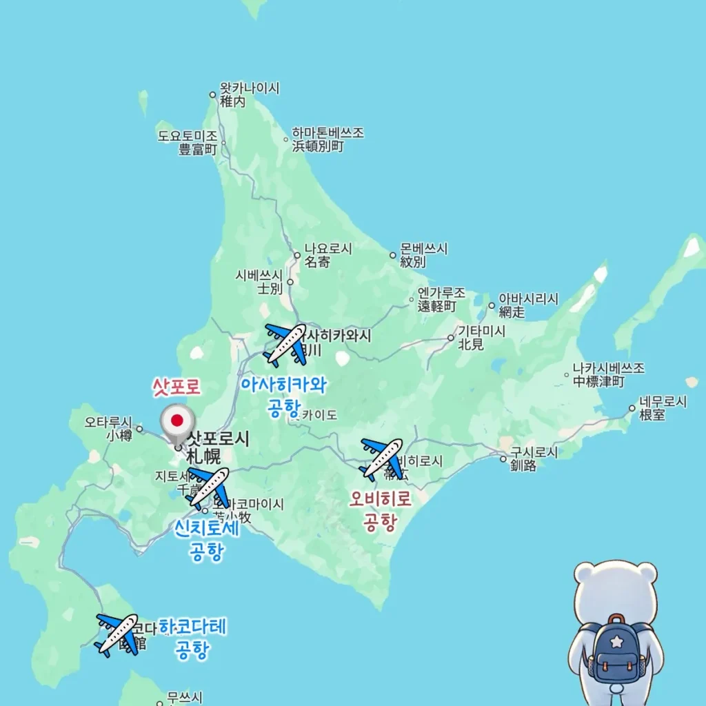 *공항이 있는 실제 위치는 ‘치토세시’지만, 편의를 위해 도시를 삿포로로 적었어요!