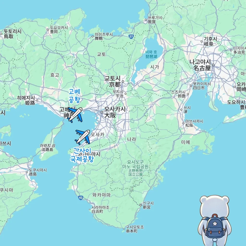 간사이에는 2개 공항에 직항편이 있는데, 오사카의 ‘간사이 국제공항’과 고베의 ‘고베 공항’이 있어요.
