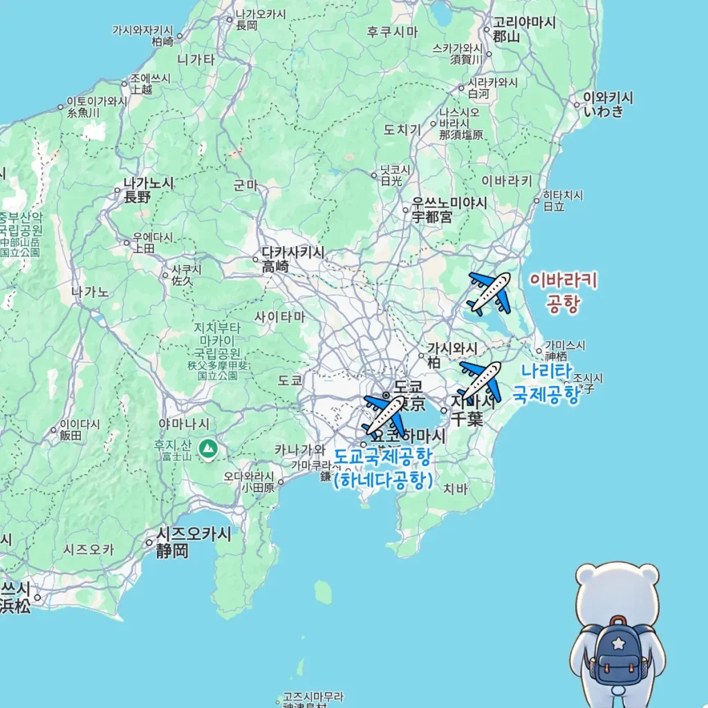 일본의 중심부이자 수도권인 간토에는 2개 공항에 직항편이 있어요.