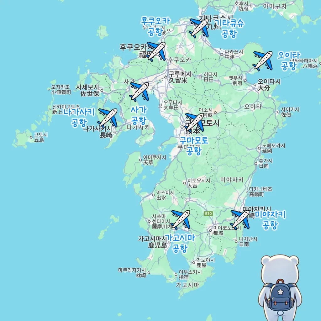 각 현마다 최소 1개 공항에 모두 직항편이 있는 지역은 큐슈가 유일해요.